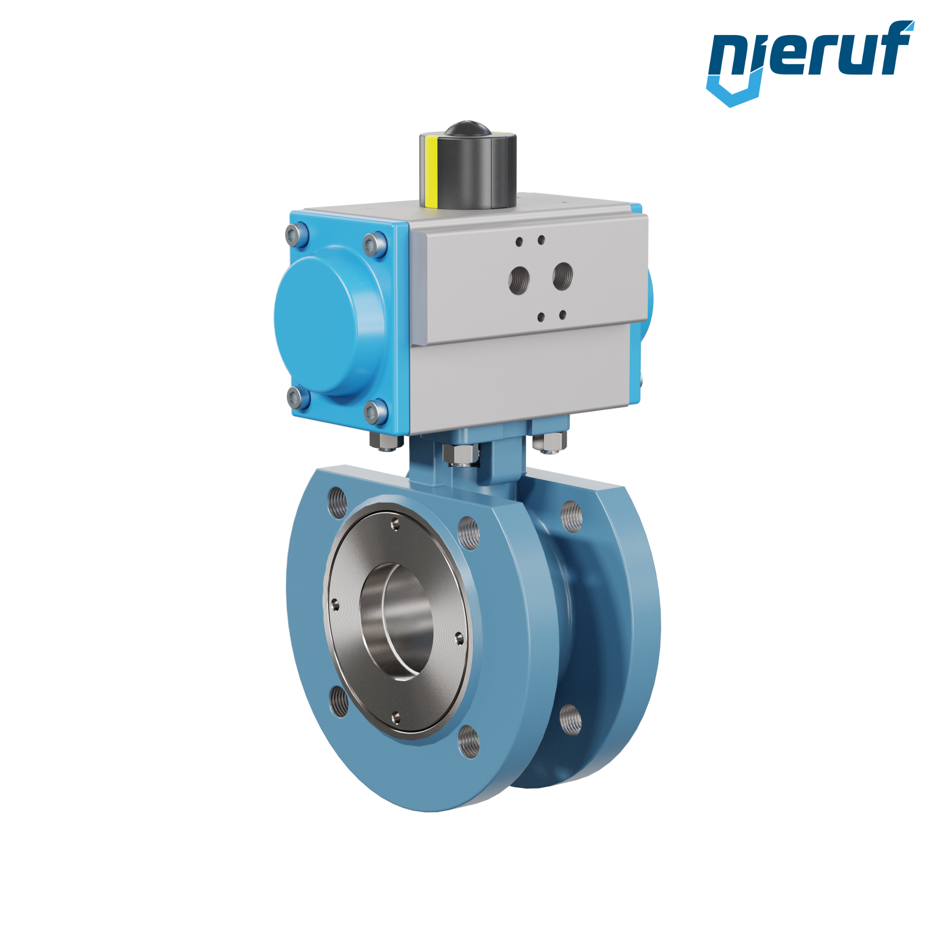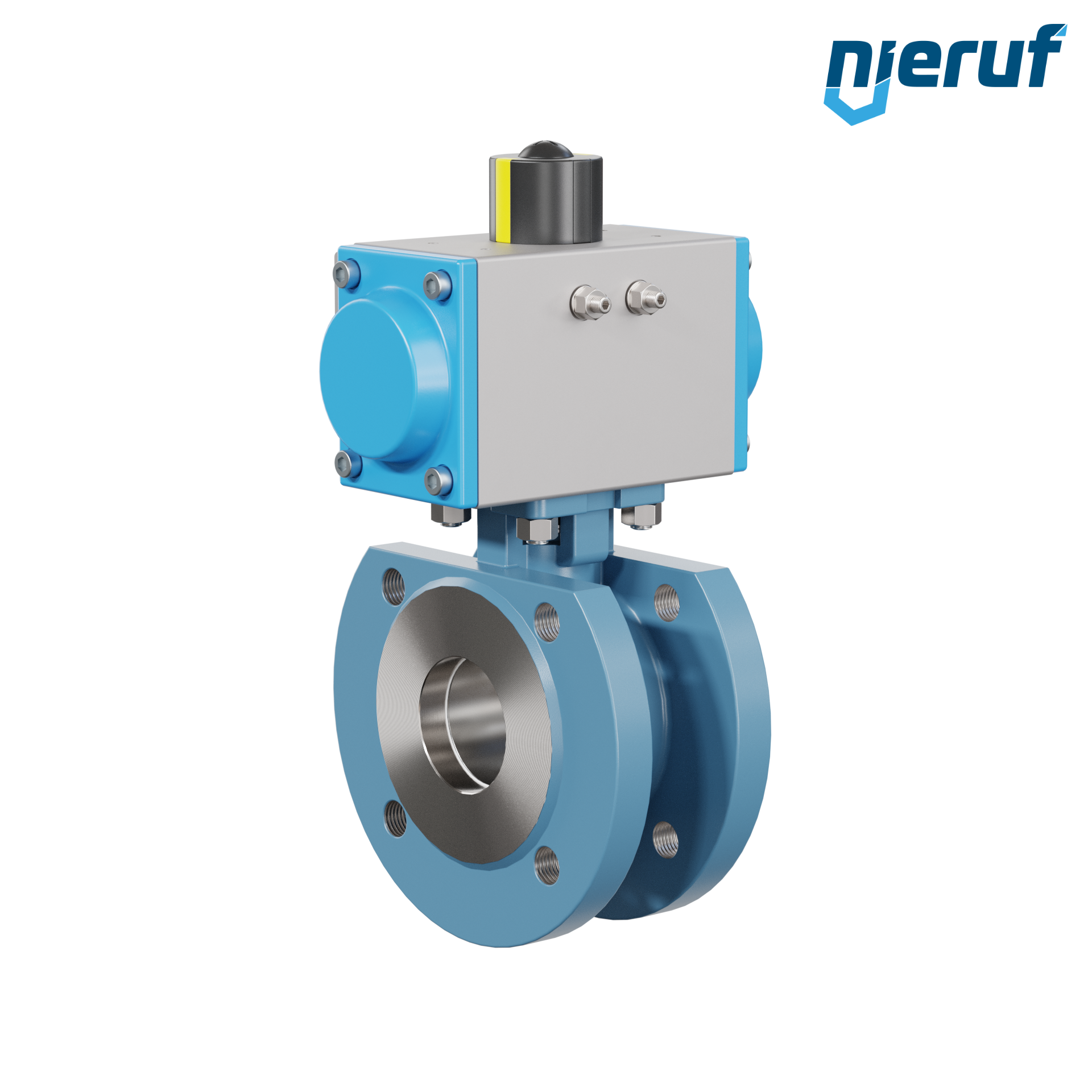 Per questa valvola a sfera flangiata automatica di alta qualità in acciaio fuso con attuatore rotativo pneumatico (GD = a doppio effetto), è possibile un montaggio diretto a flangia di valvole elettromagnetiche Namur.