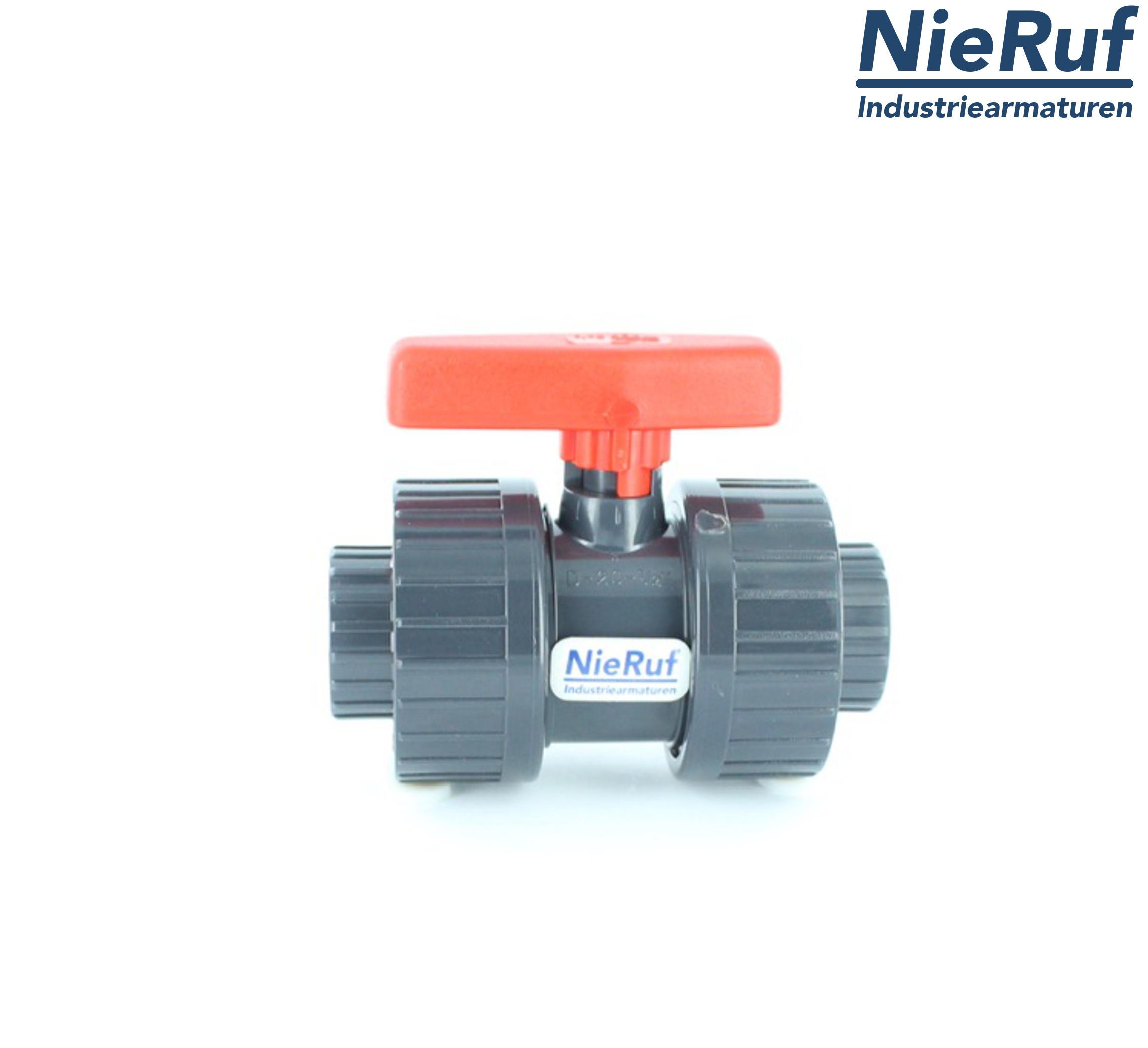 valvola a sfera in PVC d 25 PVC-U KK01 guarnizione: Hytrel/EPDM leva a mano con due collegamenti a vite per fluidi liquidi & gassosi
