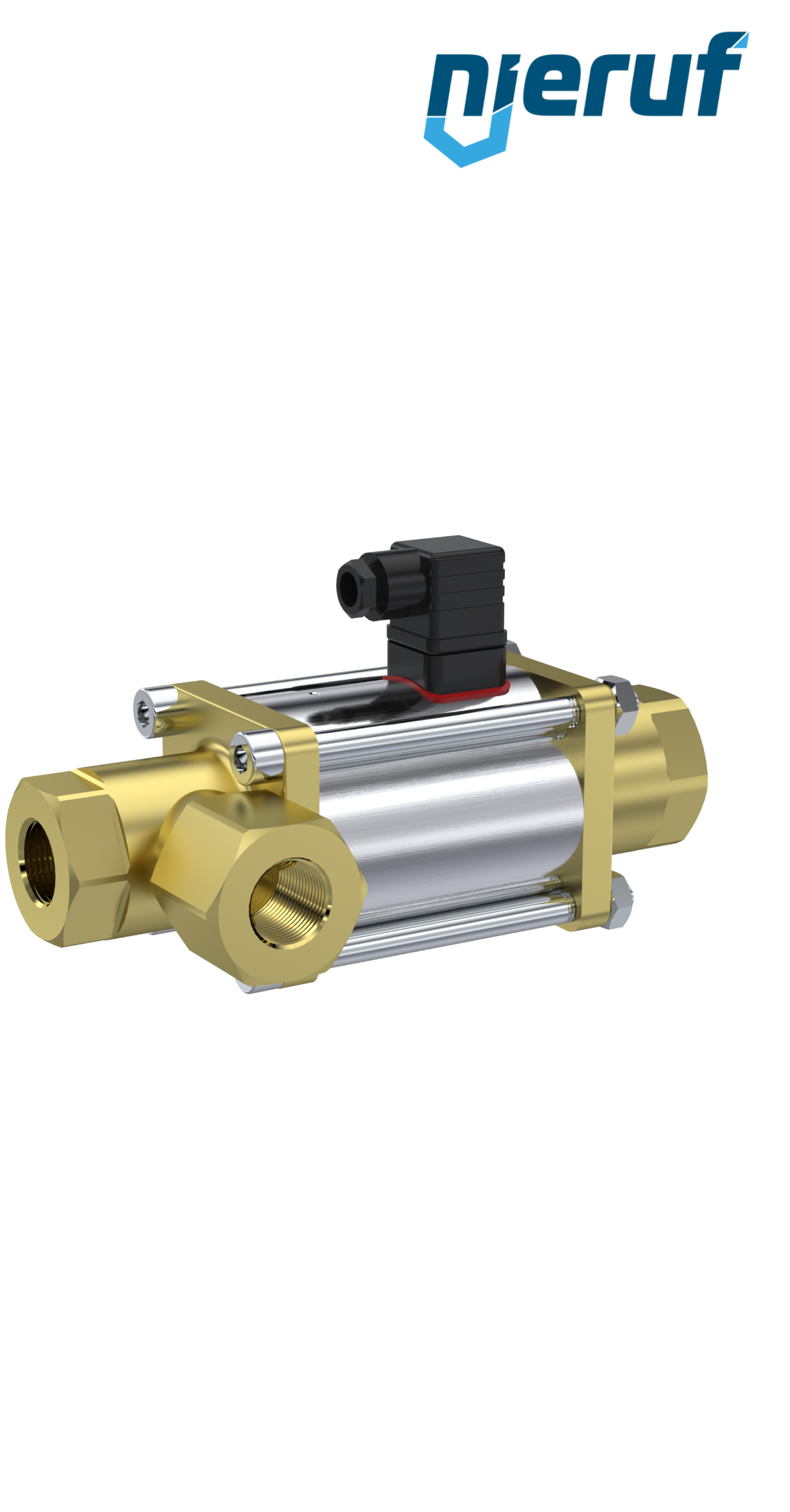 valvola coassiale a 3/2 vie 3/8" pollici IG - DN10 in ottone, a comando diretto fino ad un massimo di 40 bar, NO - normalmente aperta, voltaggio 230V AC - per acqua