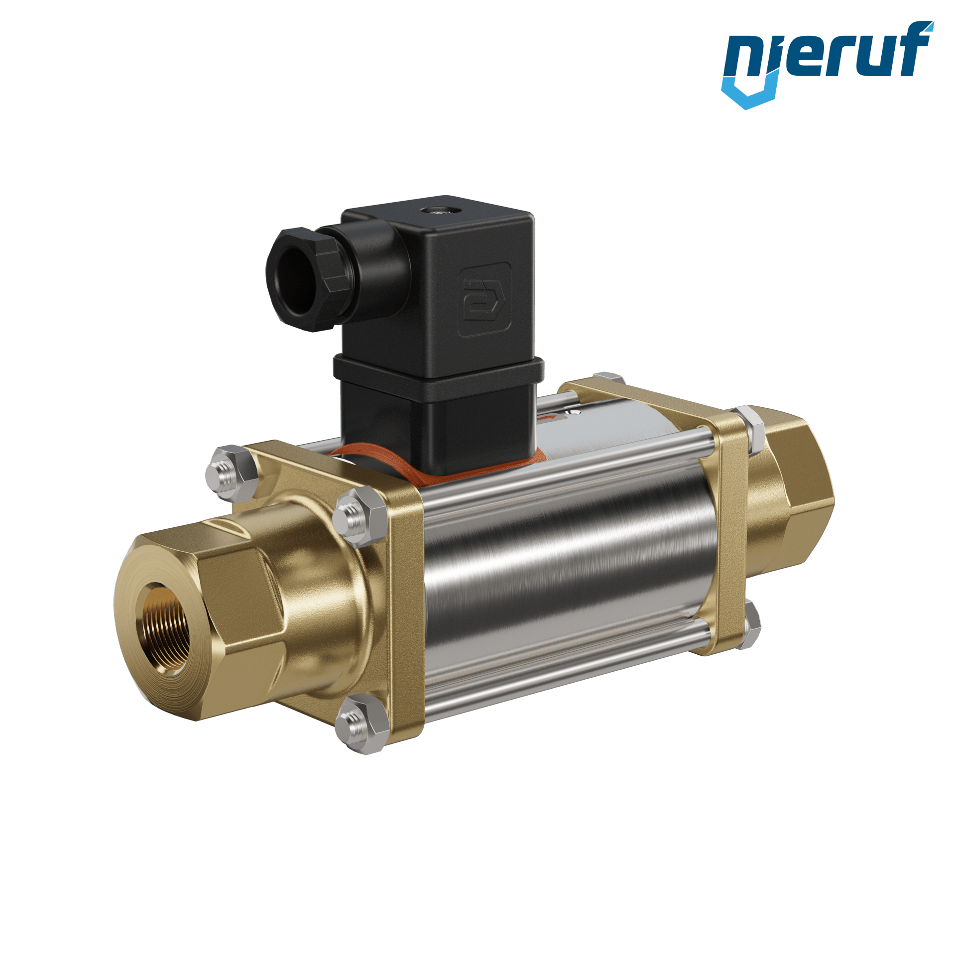 valvola coassiale a 2/2 vie 3/8" pollici IG - DN10 in ottone, a comando diretto fino ad un massimo di 40 bar, NO - normalmente aperta, voltaggio 24V DC
