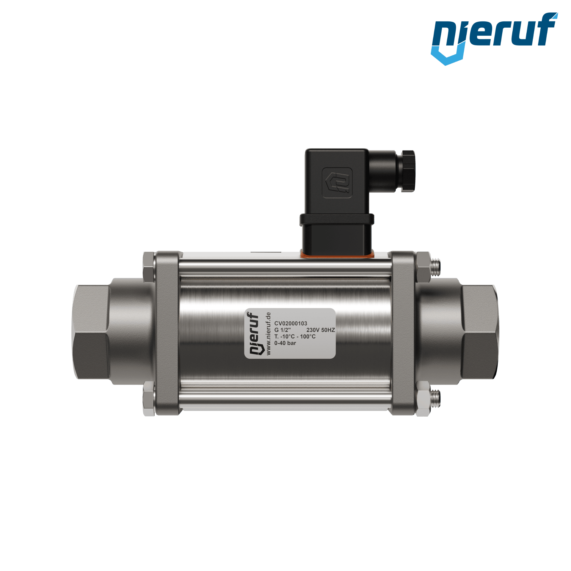 valvola coassiale a 2/2 vie 1/2" pollici IG - DN15 in acciaio inossidabile, a comando diretto fino ad un massimo di 40 bar, NO - normalmente aperta, voltaggio 230V AC