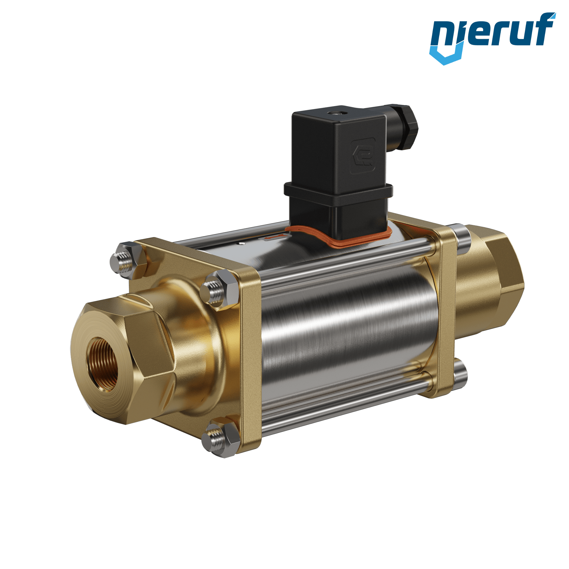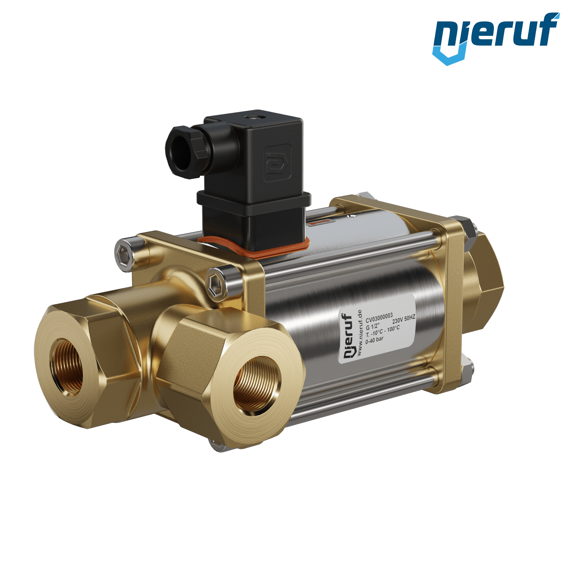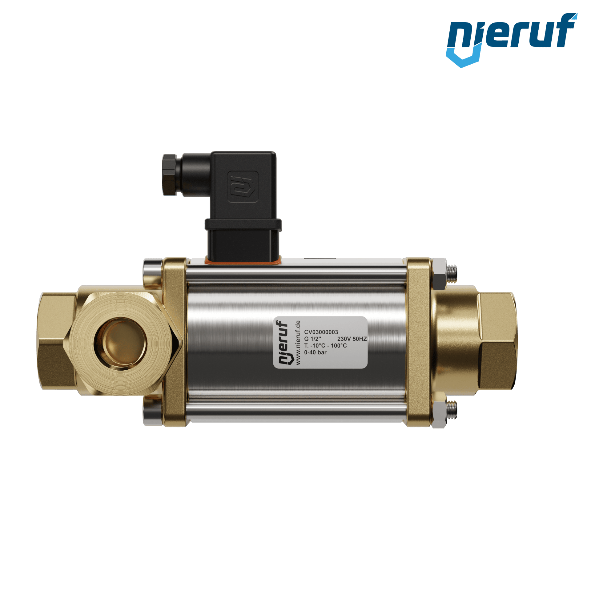 valvola coassiale a 3/2 vie 1/2" pollici IG - DN15 in ottone, a comando diretto fino ad un massimo di 40 bar, NC - normalmente chiusa, voltaggio 230V AC
