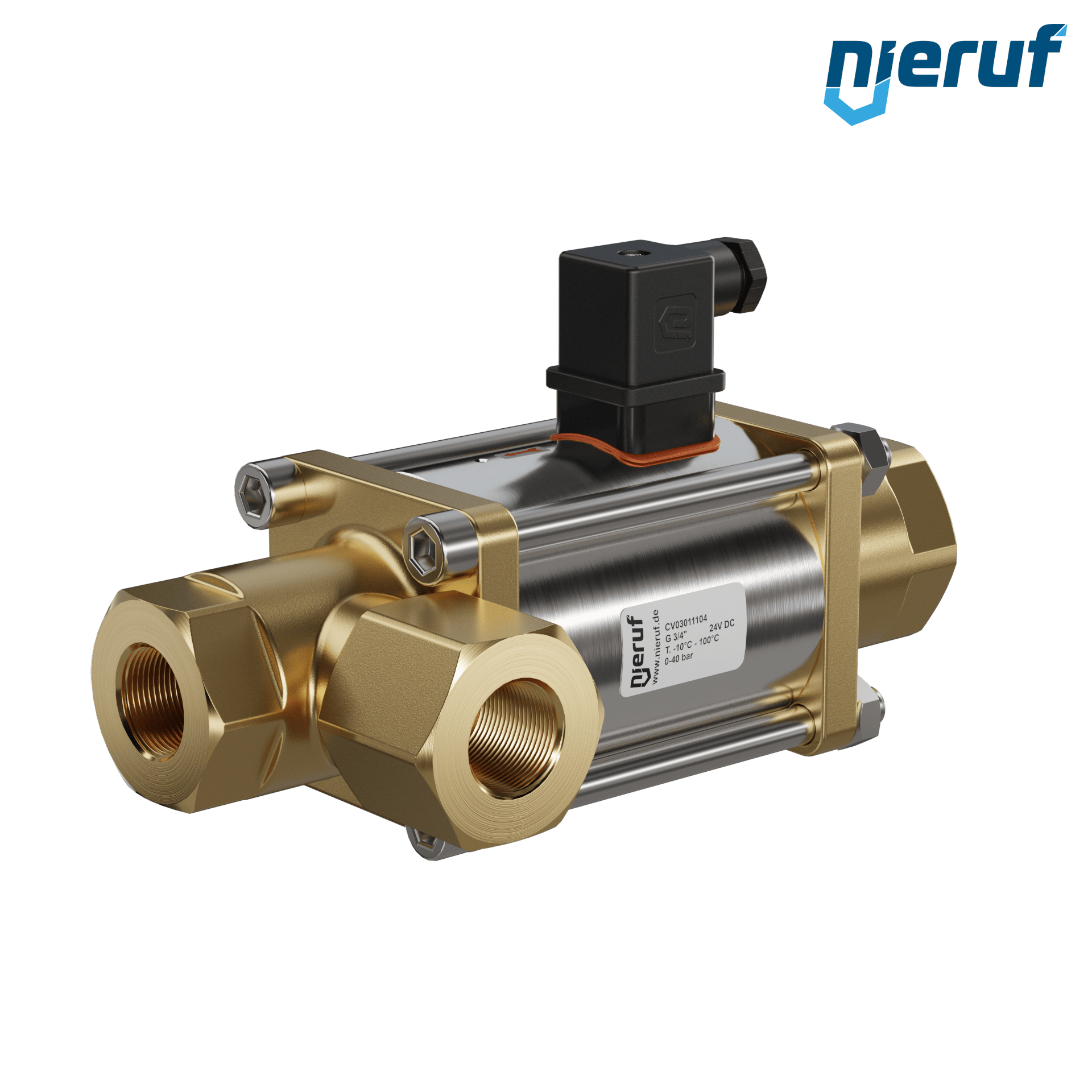 valvola coassiale a 3/2 vie 3/4" pollici IG - DN20 in ottone, a comando diretto fino ad un massimo di 40 bar, NO - normalmente aperta, voltaggio 24V DC - per acqua