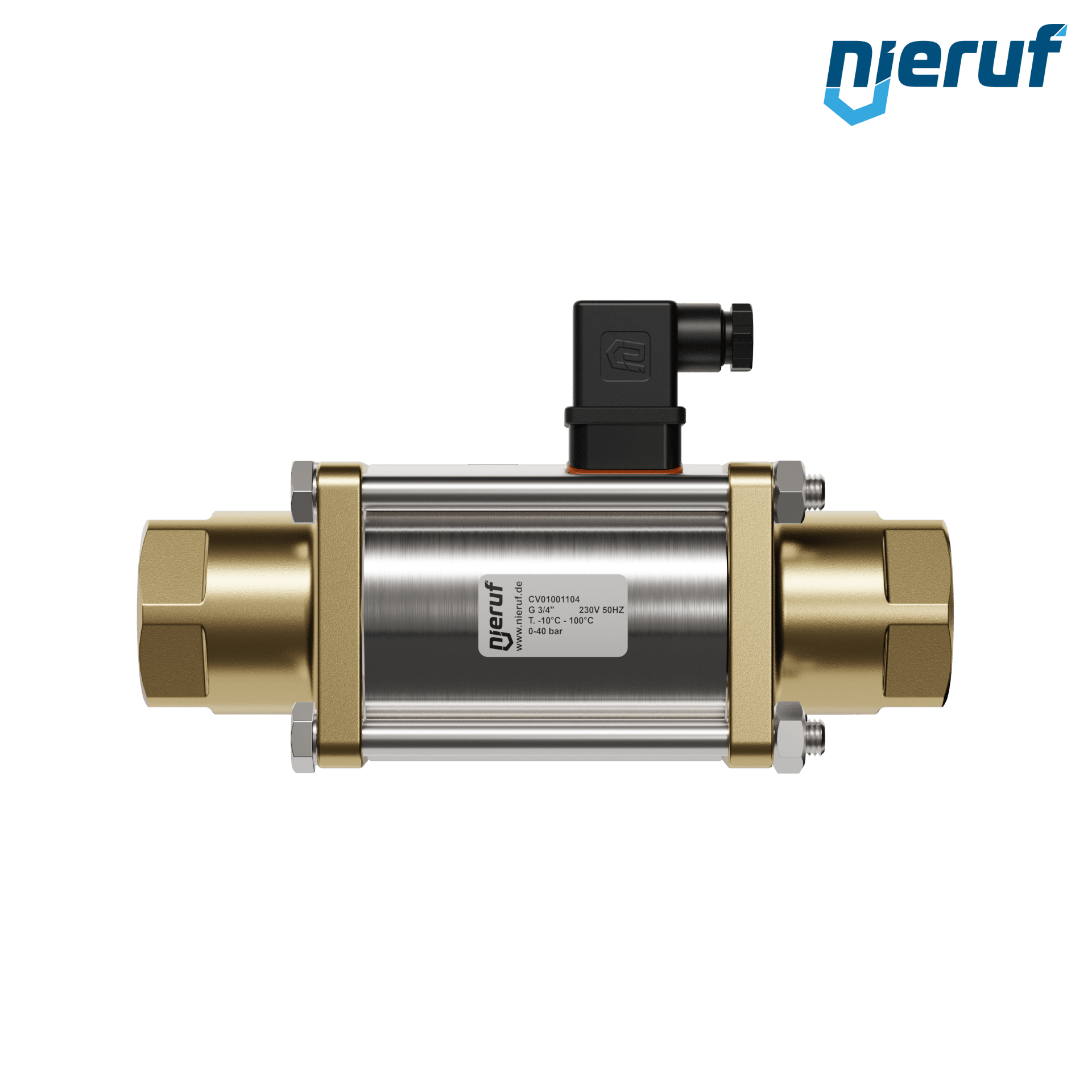 valvola coassiale a 2/2 vie 3/4" pollici IG - DN20 in ottone, a comando diretto fino ad un massimo di 40 bar, NO - normalmente aperta, voltaggio 230V AC - per acqua