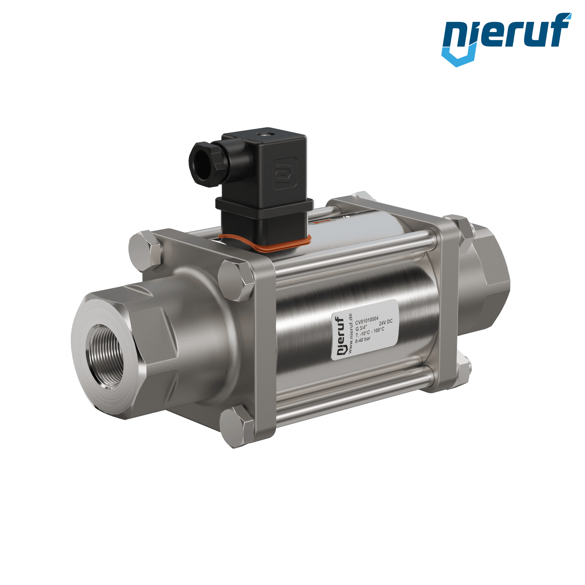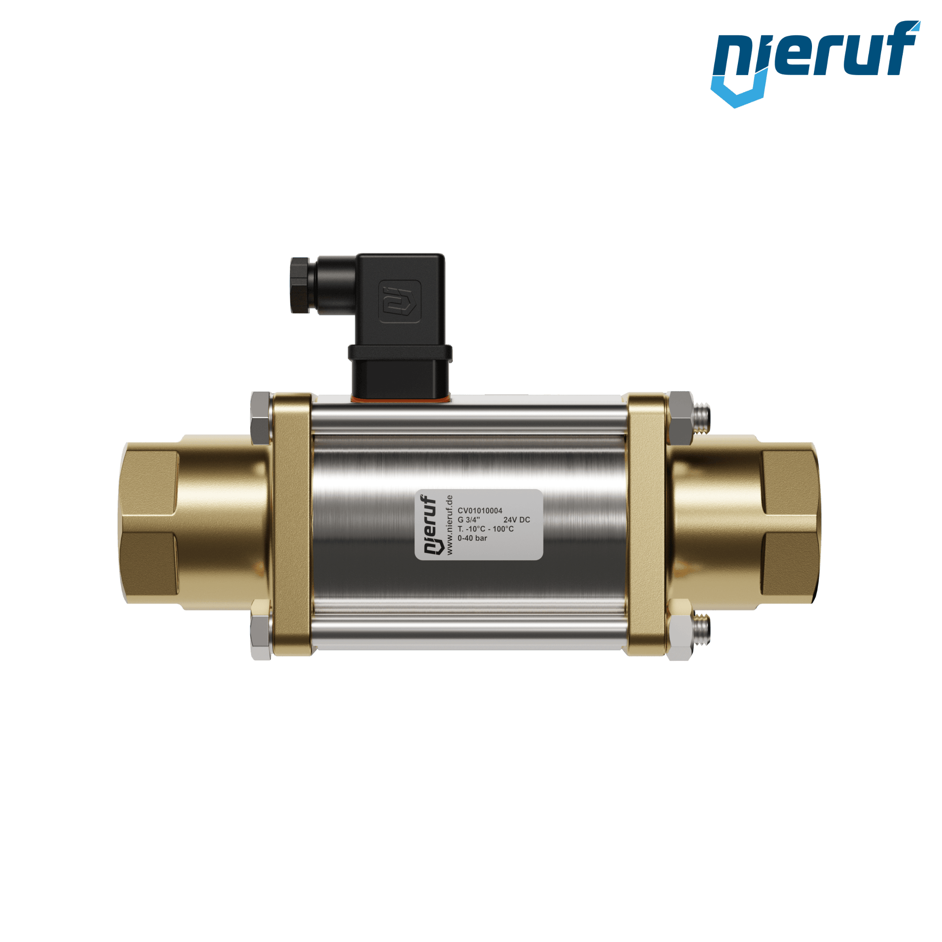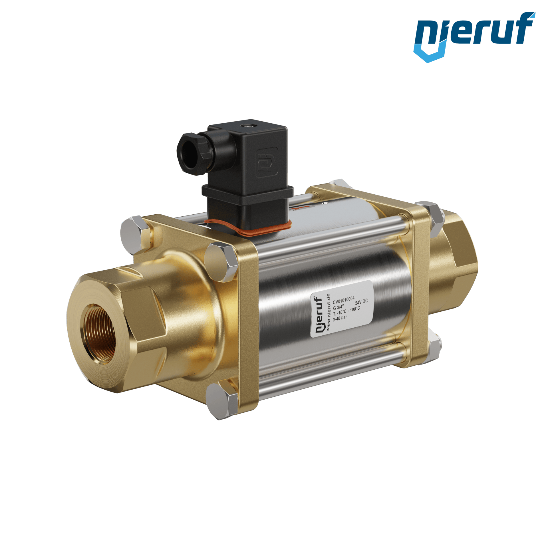 valvola coassiale a 2/2 vie 3/4" pollici IG - DN20 in ottone, a comando diretto fino ad un massimo di 40 bar, NC - normalmente chiusa, voltaggio 24V DC