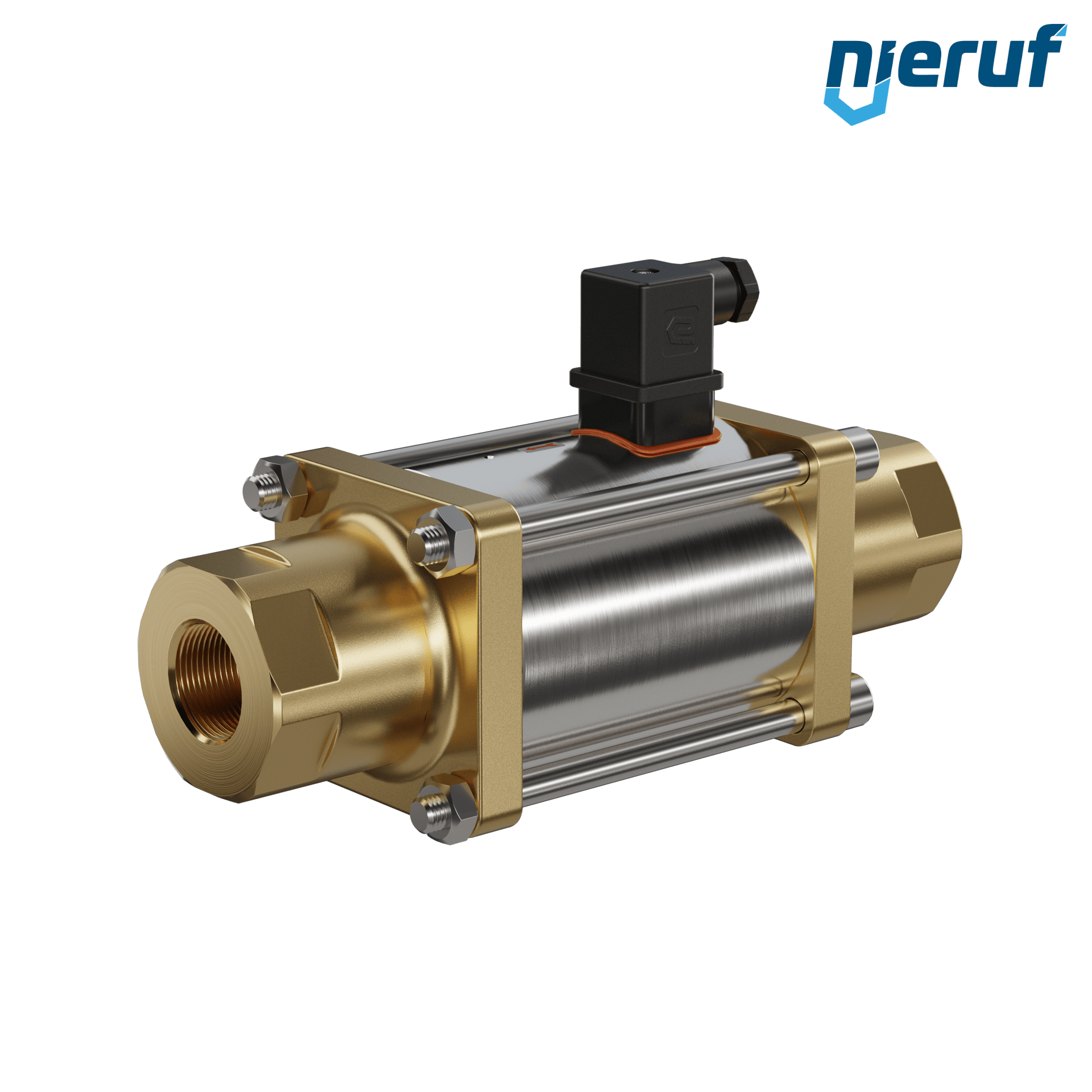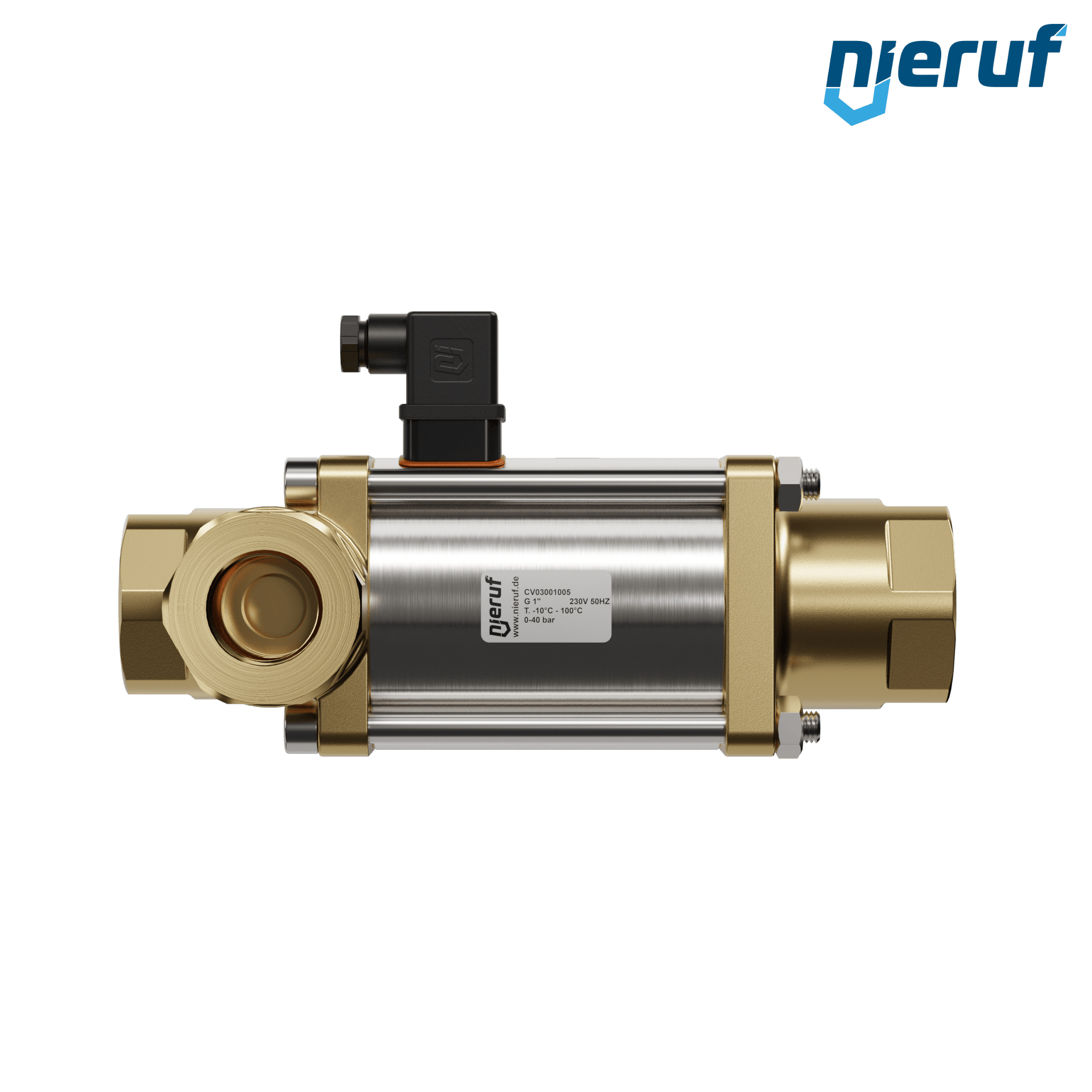 valvola coassiale a 3/2 vie 1" pollici IG - DN25 in ottone, a comando diretto fino ad un massimo di 40 bar, NC - normalmente chiusa, voltaggio 230V AC - per acqua