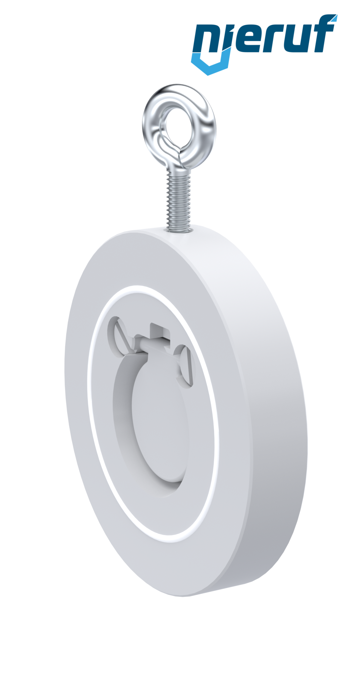 valvola di ritegno a clapet tipo wafer DN32 PN 10/16 DIN EN 1092-1 Forma B in plastica PVDF guarnizione PTFE per fluidi liquidi e gassosi