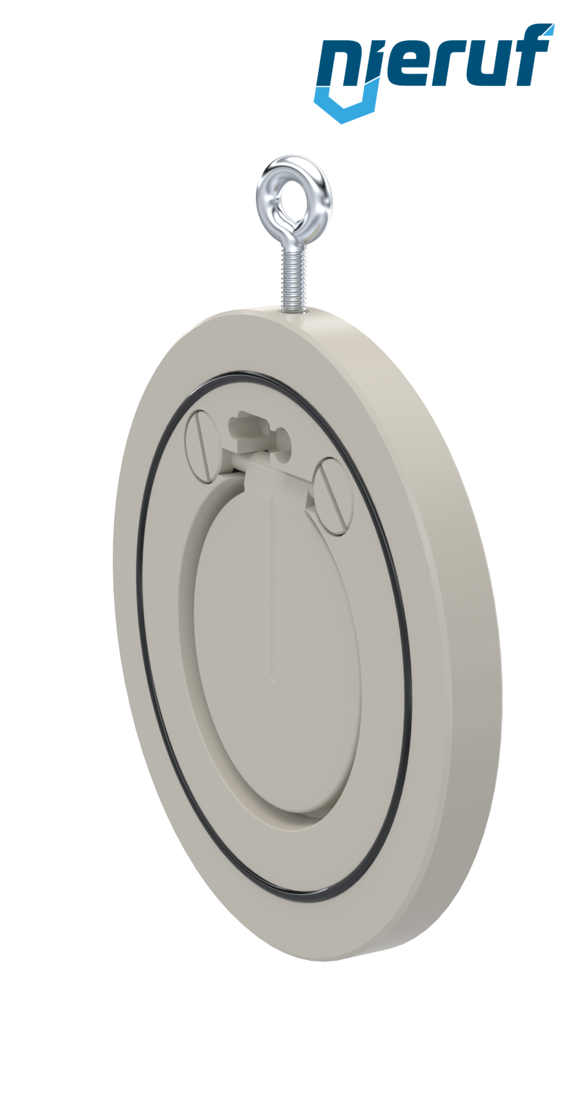 valvola di ritegno a clapet tipo wafer DN80 PN 10/16 DIN EN 1092-1 Forma B in plastica PP-H guarnizione NBR per fluidi liquidi e gassosi