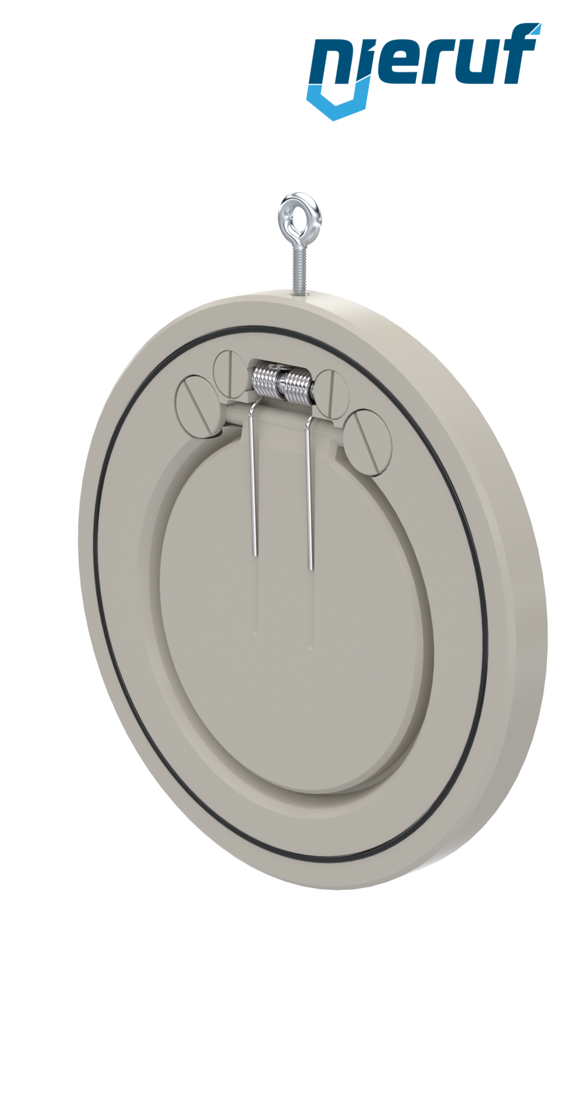 valvola di ritegno a clapet tipo wafer con molla DN150 PN 10/16 DIN EN 1092-1 Forma B in plastica PP-H guarnizione NBR per fluidi liquidi e gassosi