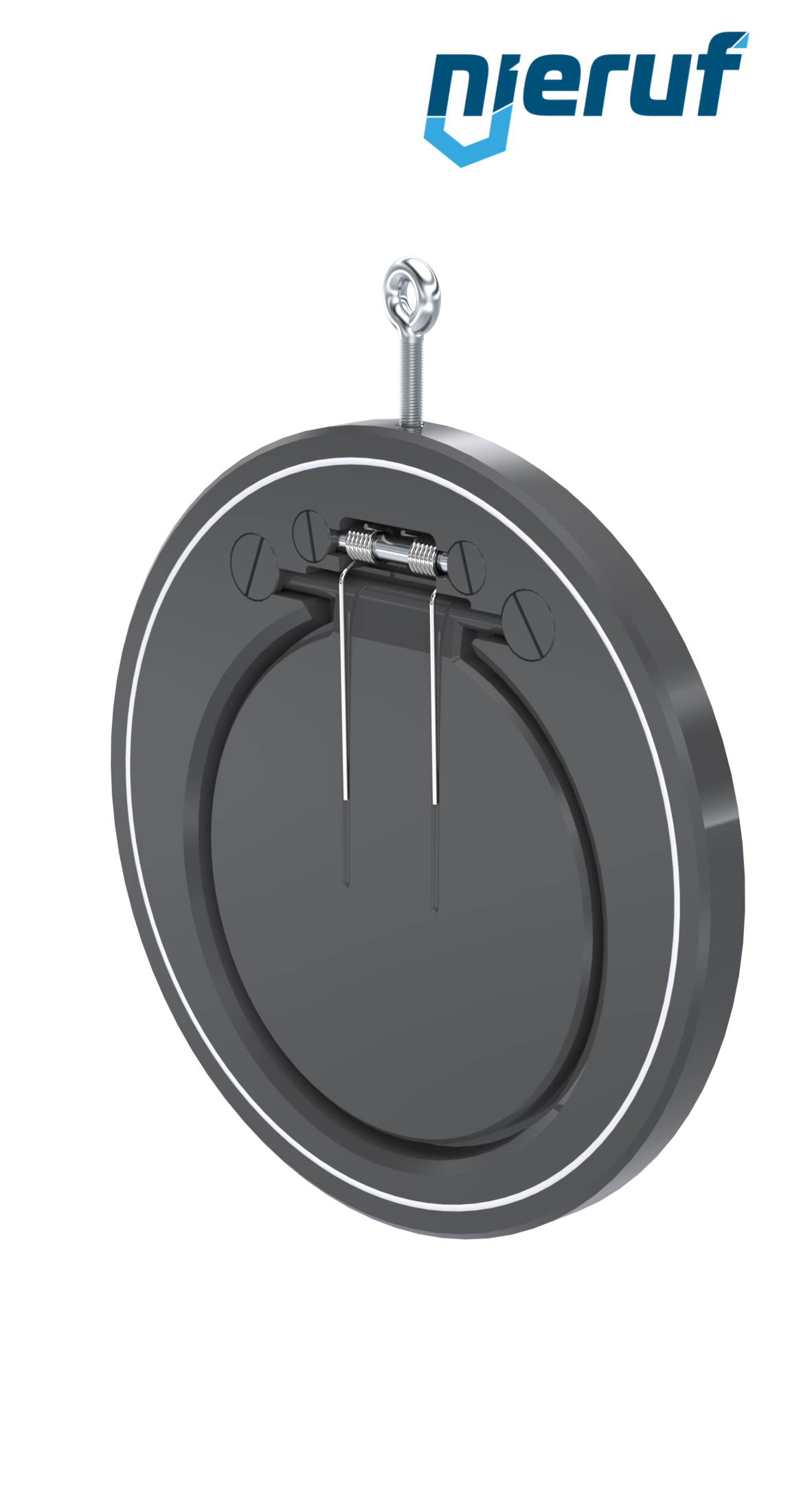 valvola di ritegno a clapet tipo wafer con molla DN200 PN 10/16 DIN EN 1092-1 Forma B in plastica PVC-U guarnizione PTFE per fluidi liquidi e gassosi