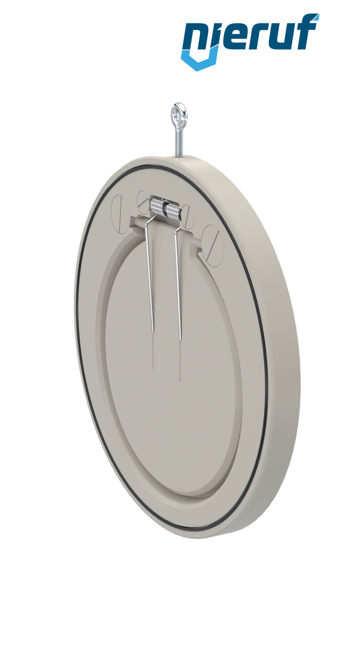 valvola di ritegno a clapet tipo wafer con molla DN300 PN 10 DIN EN 1092-1 Forma B in plastica PP-H guarnizione FKM (Viton) per fluidi liquidi e gassosi