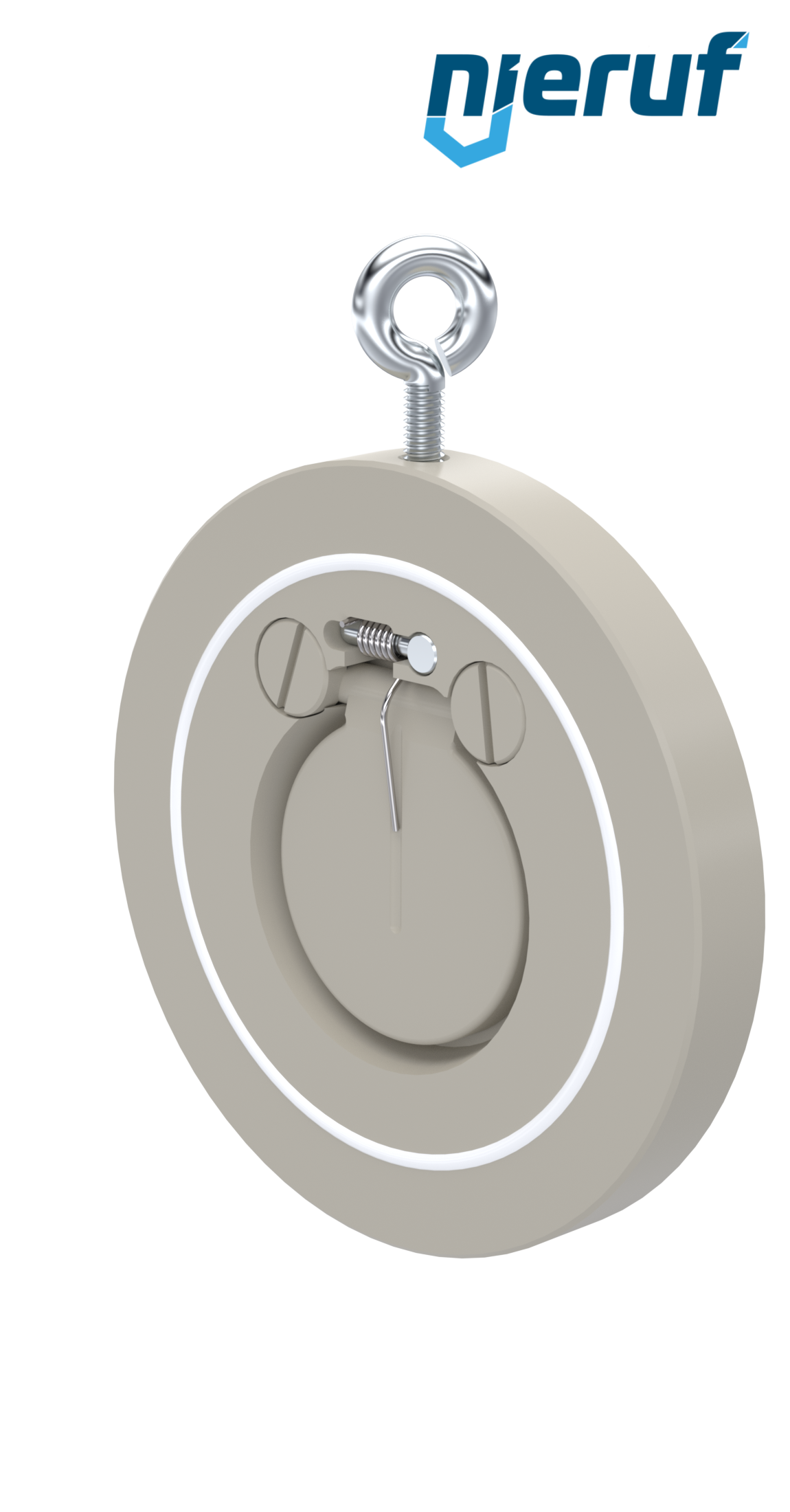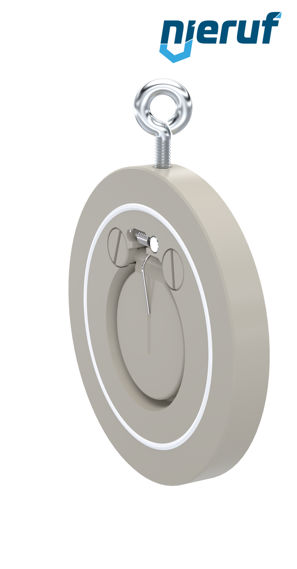 valvola di ritegno a clapet tipo wafer con molla DN50 PN 10/16 DIN EN 1092-1 Forma B in plastica PP-H guarnizione PTFE per fluidi liquidi e gassosi