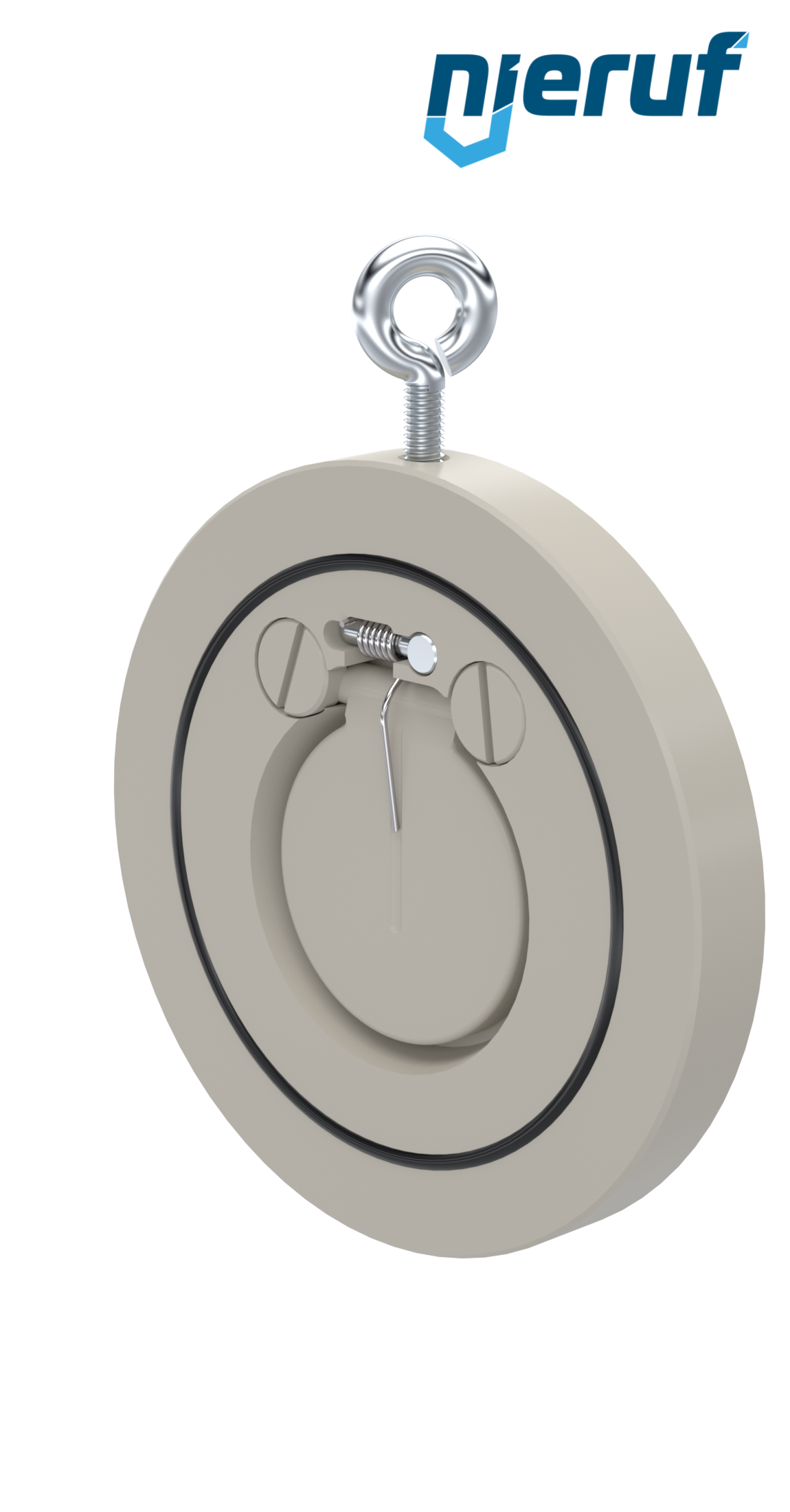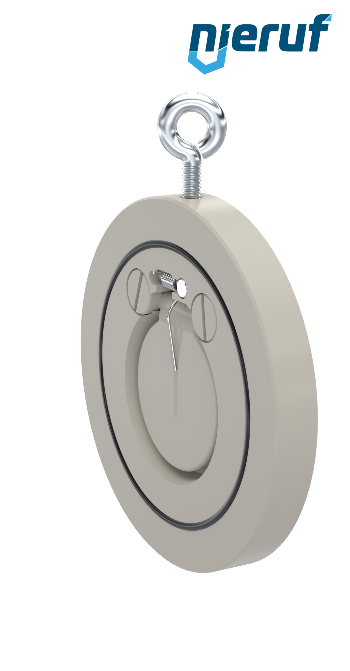 valvola di ritegno a clapet tipo wafer con molla DN50 PN 10/16 DIN EN 1092-1 Forma B in plastica PP-H guarnizione FKM (Viton)