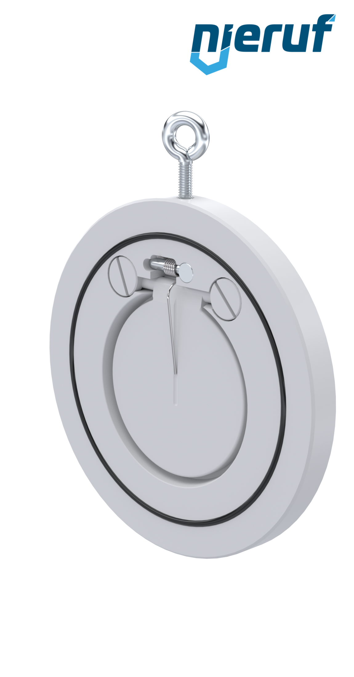 valvola di ritegno a clapet tipo wafer con molla DN80 PN 10/16 DIN EN 1092-1 Forma B in plastica PVDF guarnizione EPDM per fluidi liquidi e gassosi