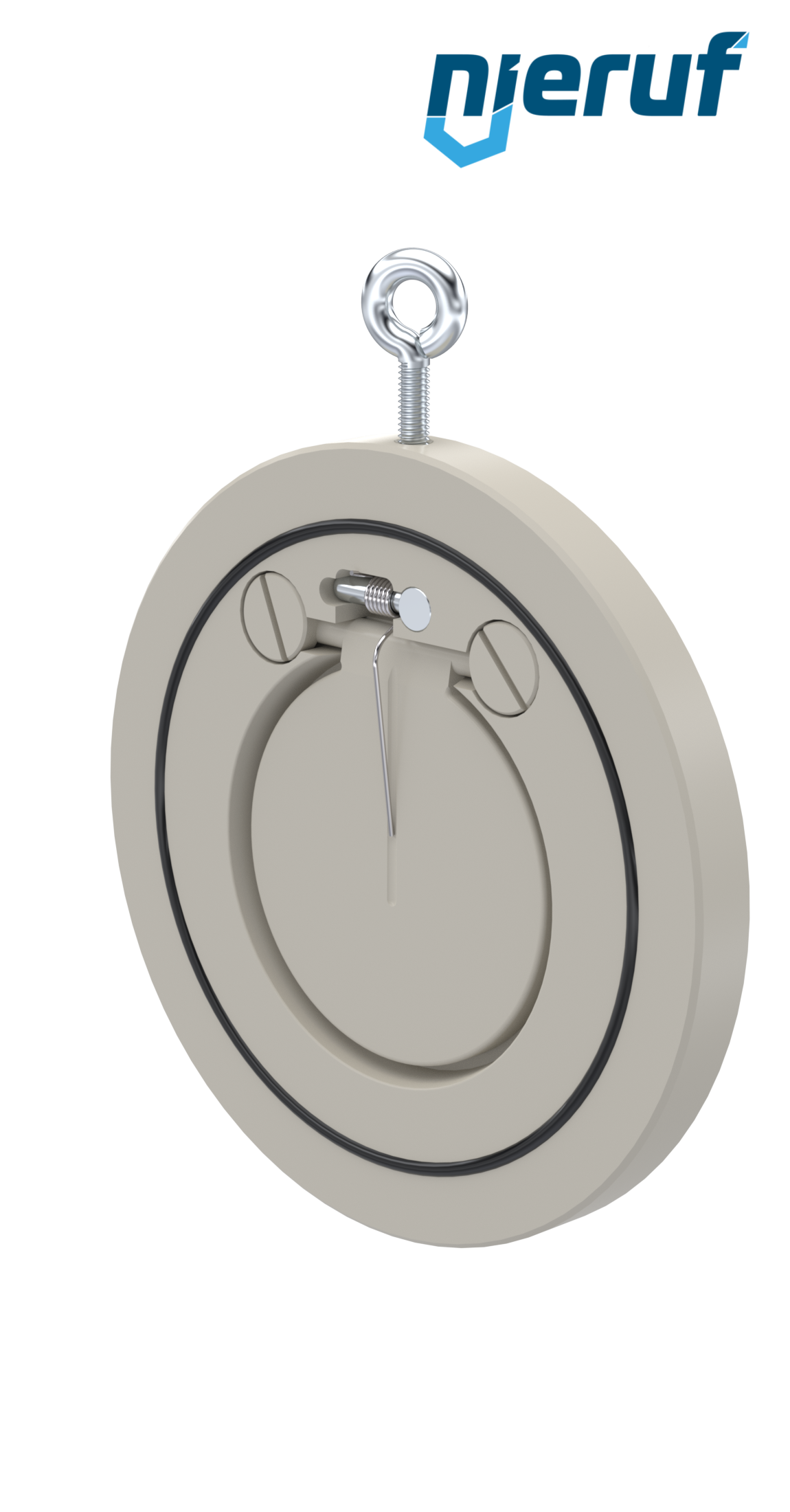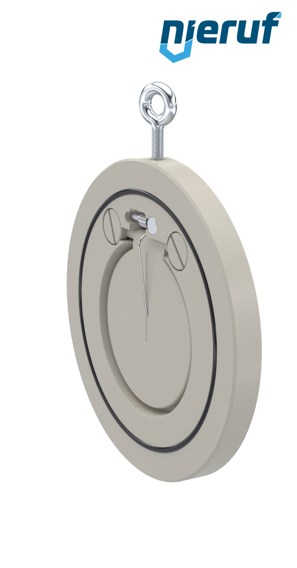 valvola di ritegno a clapet tipo wafer con molla DN80 PN 10/16 DIN EN 1092-1 Forma B in plastica PP-H guarnizione FKM (Viton)