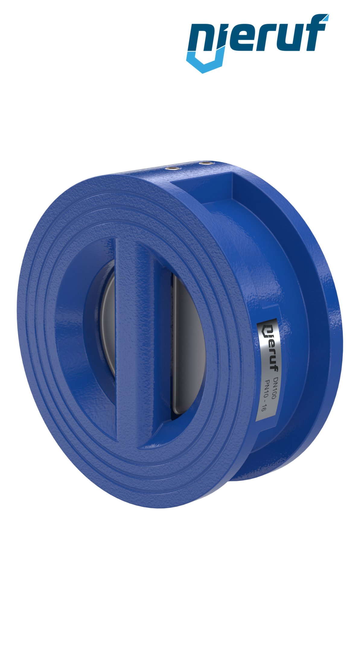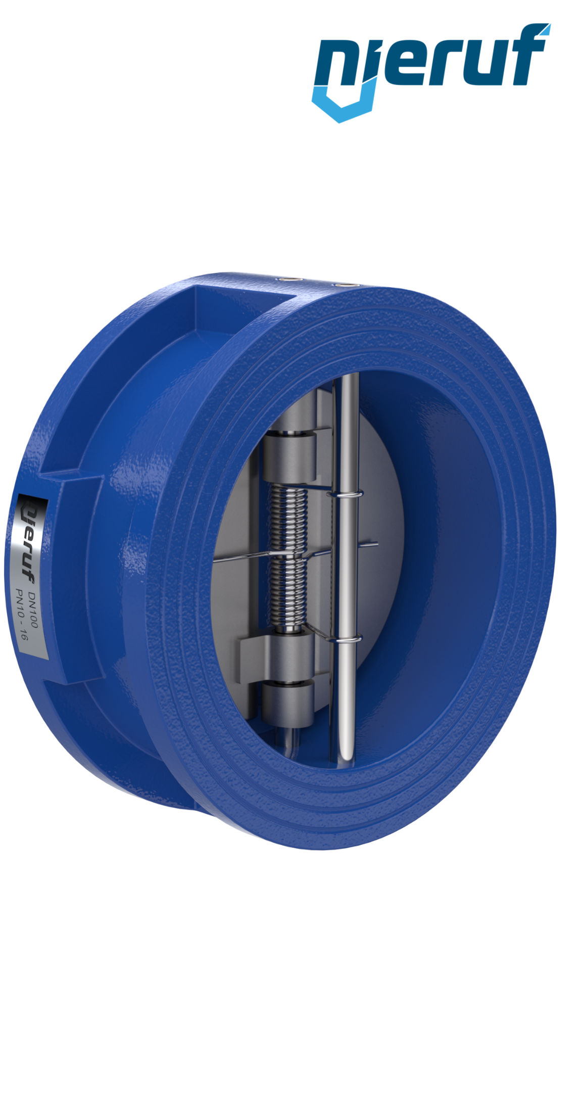 valvola di ritegno a doppio battente DN100 guarnizione NBR ASME B16.5 / ANSI 150, corpo in GGG40 con rivestimento epossidico blu 180µm , battenti in GGG40 nichelato