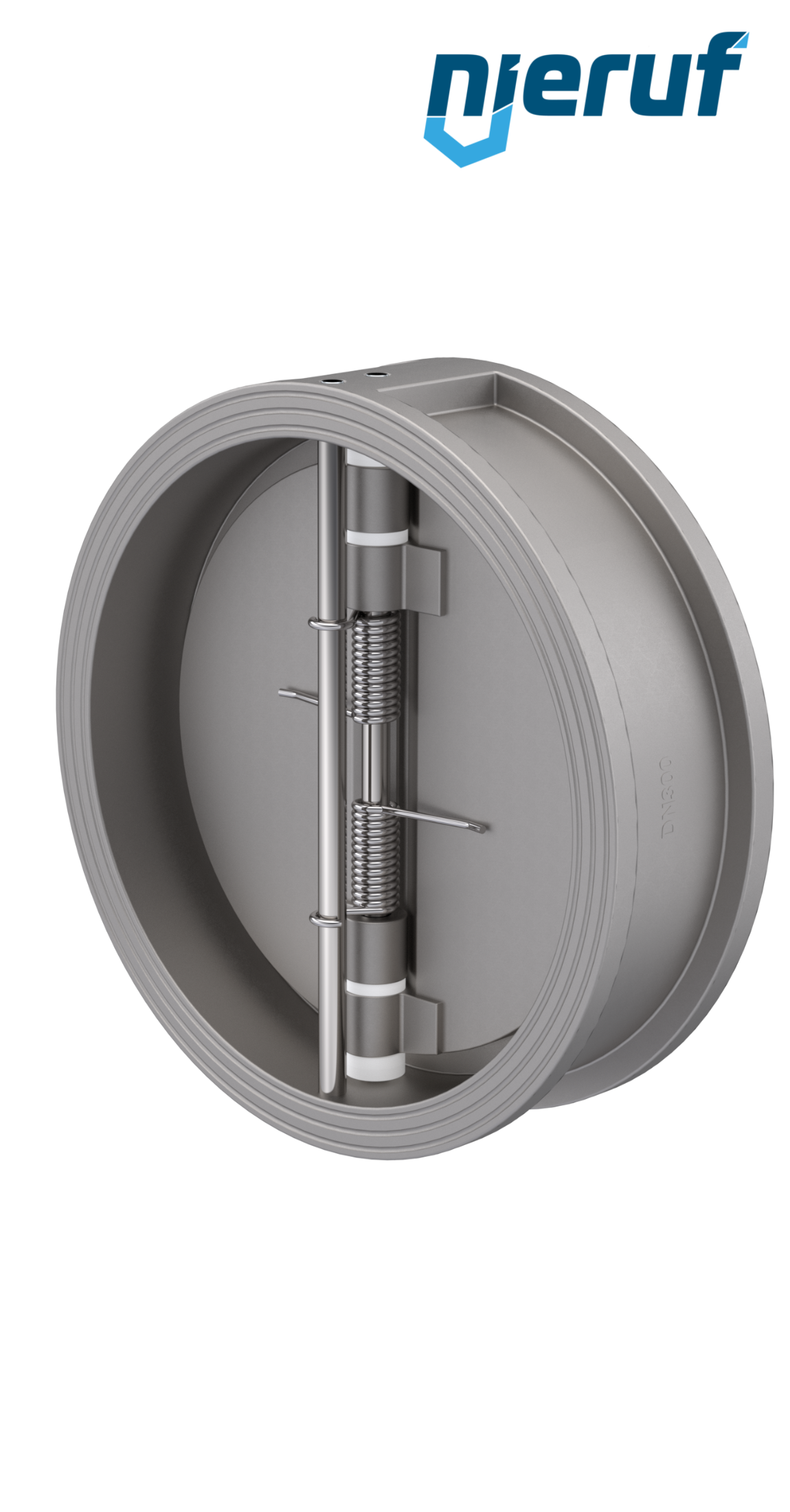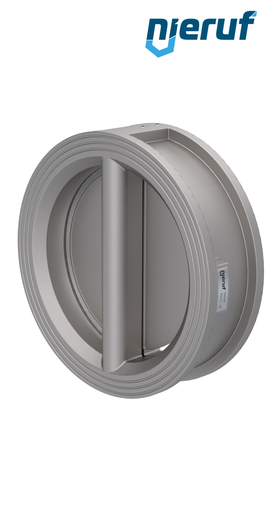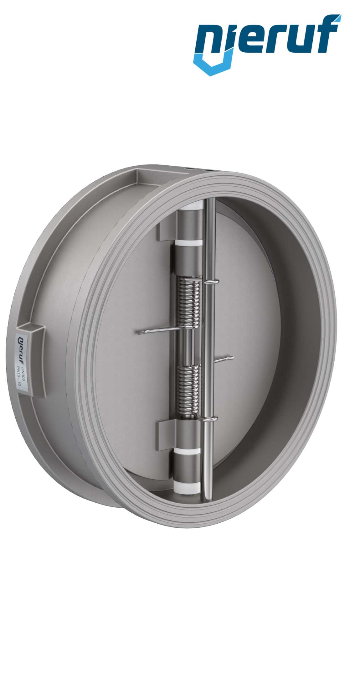valvola di ritegno a doppio battente DN300 guarnizione FKM (Viton) PN 10 DIN EN 1092-1 Forma B, corpo in acciaio inossidabile 1.4408, battenti in acciaio inossidabile 1.4408