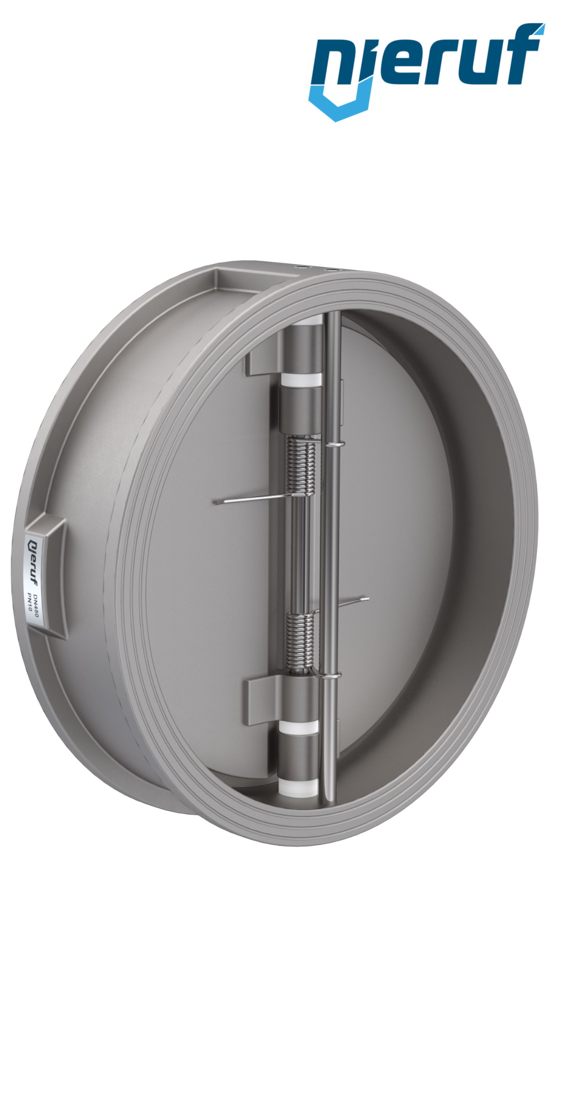 valvola di ritegno a doppio battente DN450 guarnizione FKM (Viton) PN 10 DIN EN 1092-1 Forma B, corpo in acciaio inossidabile 1.4408, battenti in acciaio inossidabile 1.4408