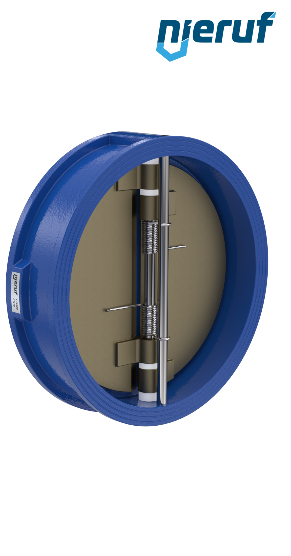 valvola di ritegno a doppio battente DN500 guarnizione NBR ASME B16.5 / ANSI 150, corpo in GGG40 con rivestimento epossidico blu 180µm , battenti in alluminio-bronzo