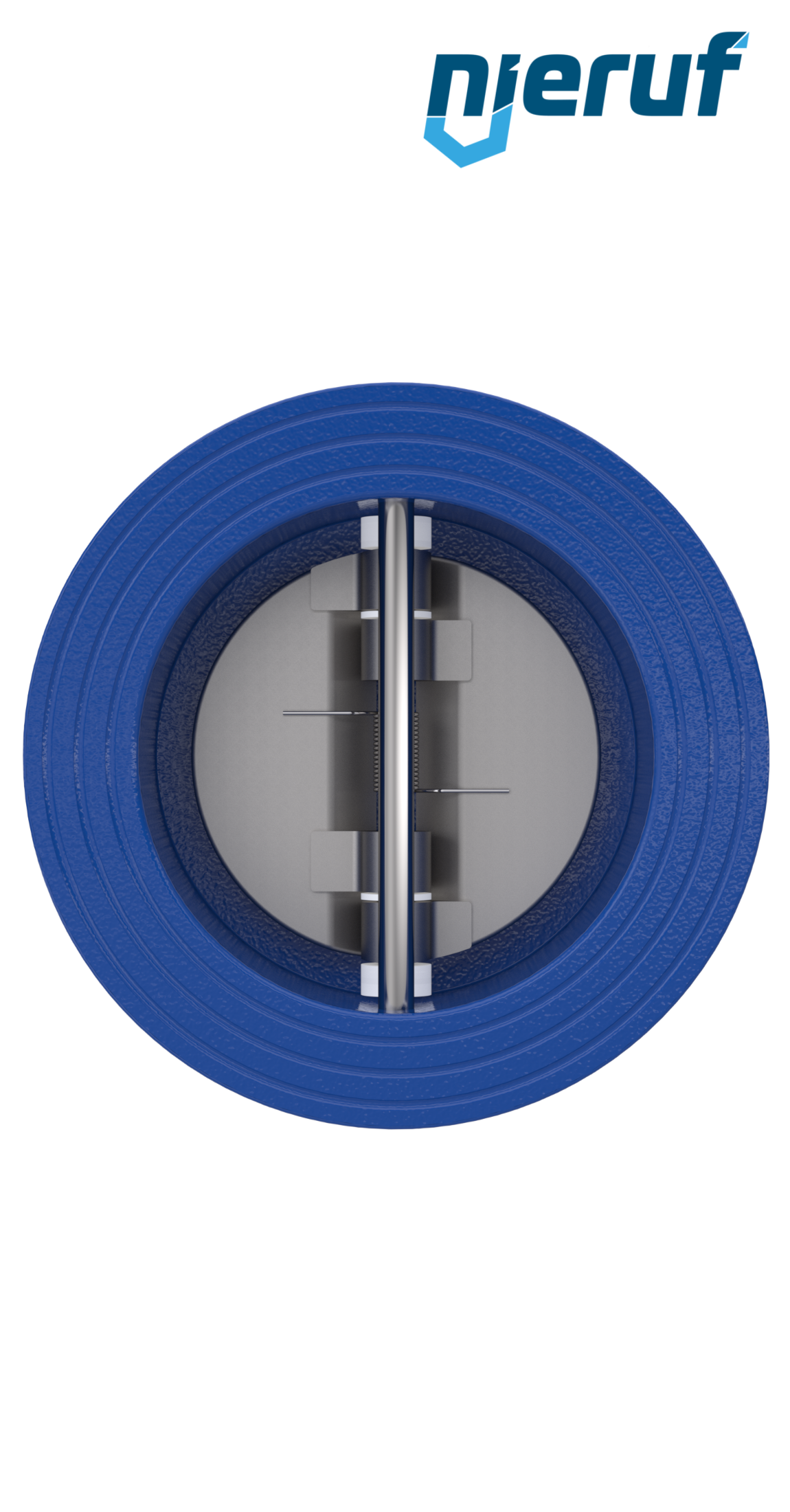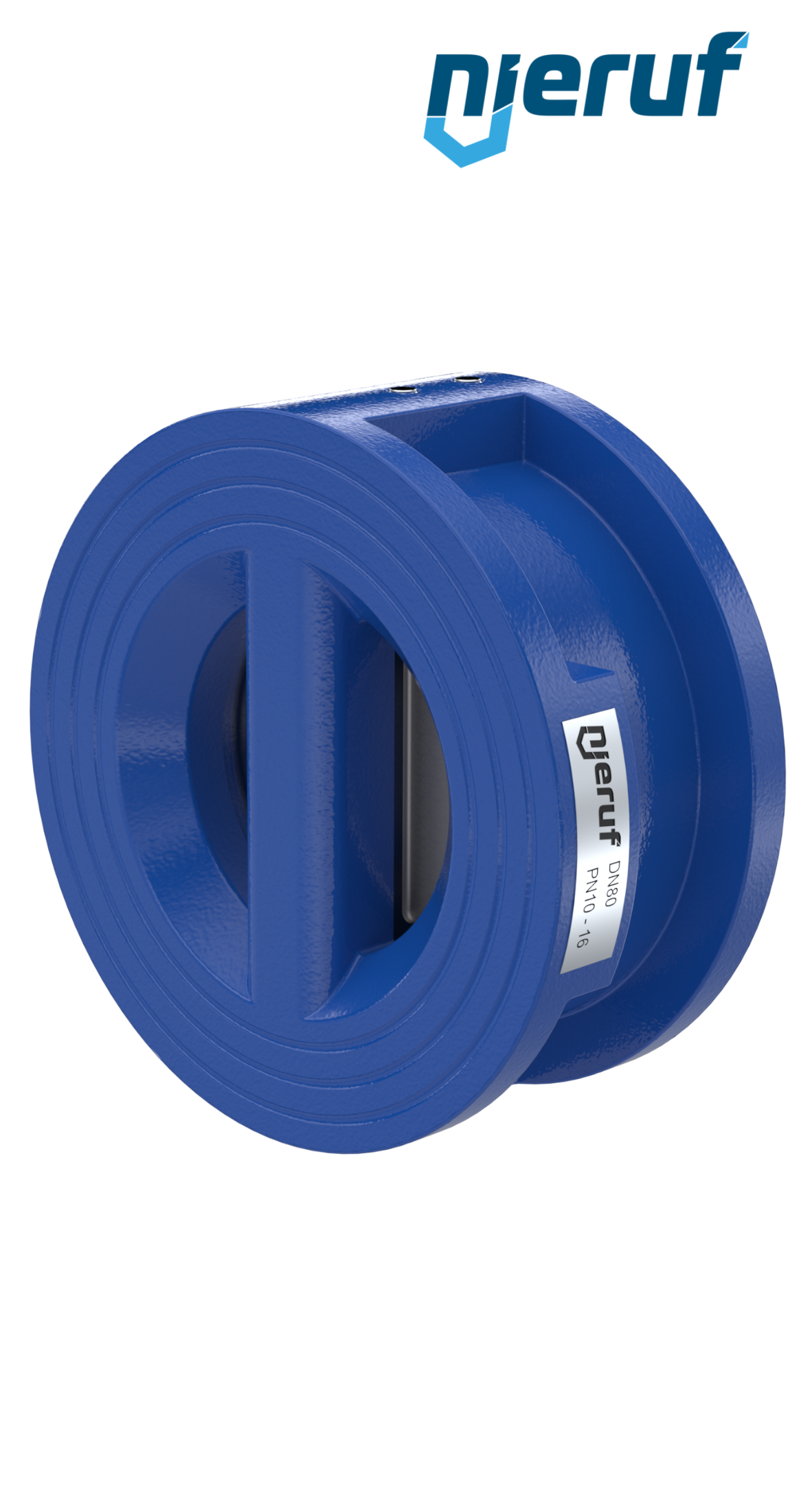 valvola di ritegno a doppio battente DN80 guarnizione FKM (Viton) PN 10/16/25/40 DIN EN 1092-1 Forma B, corpo in ghisa grigia con battenti in acciaio inossidabile