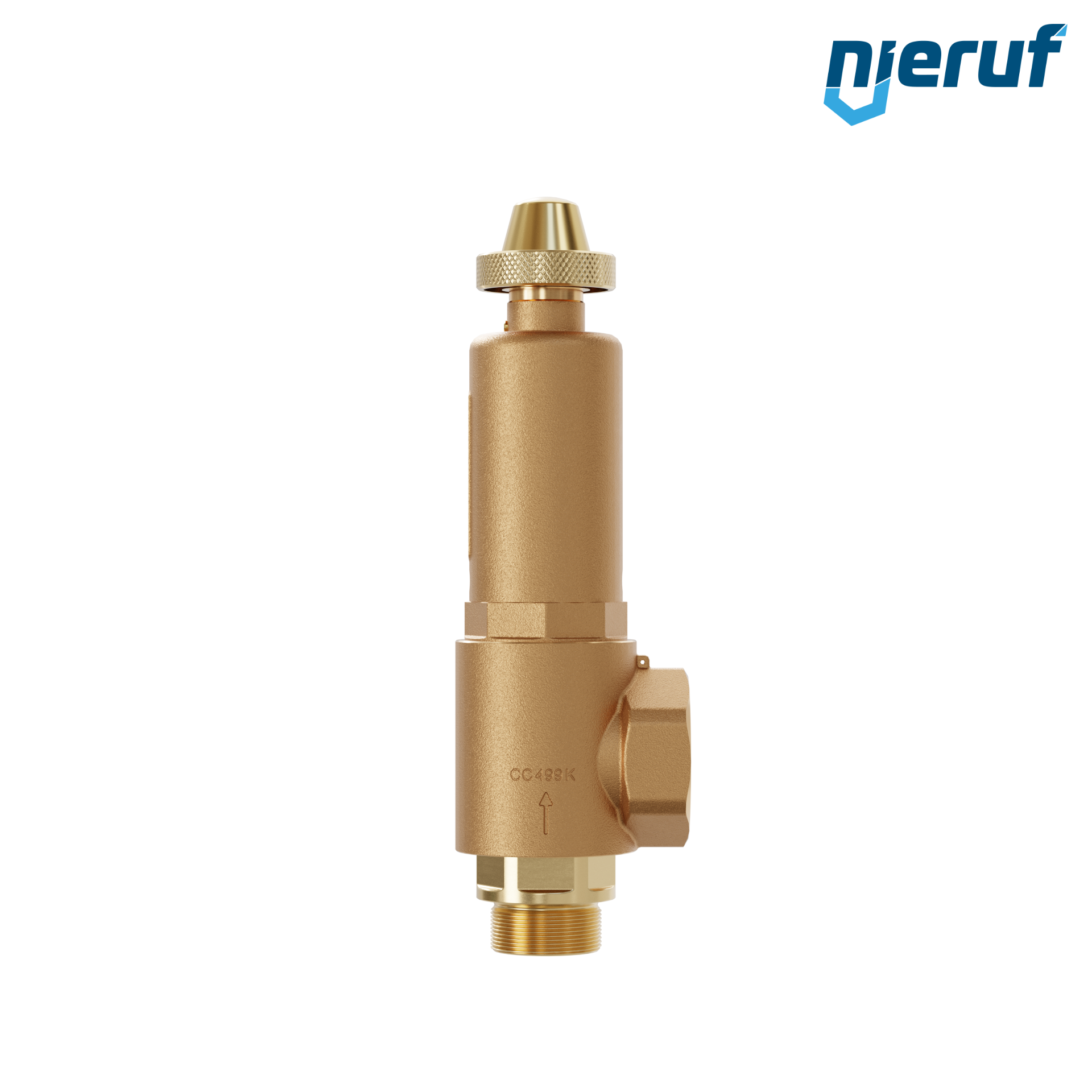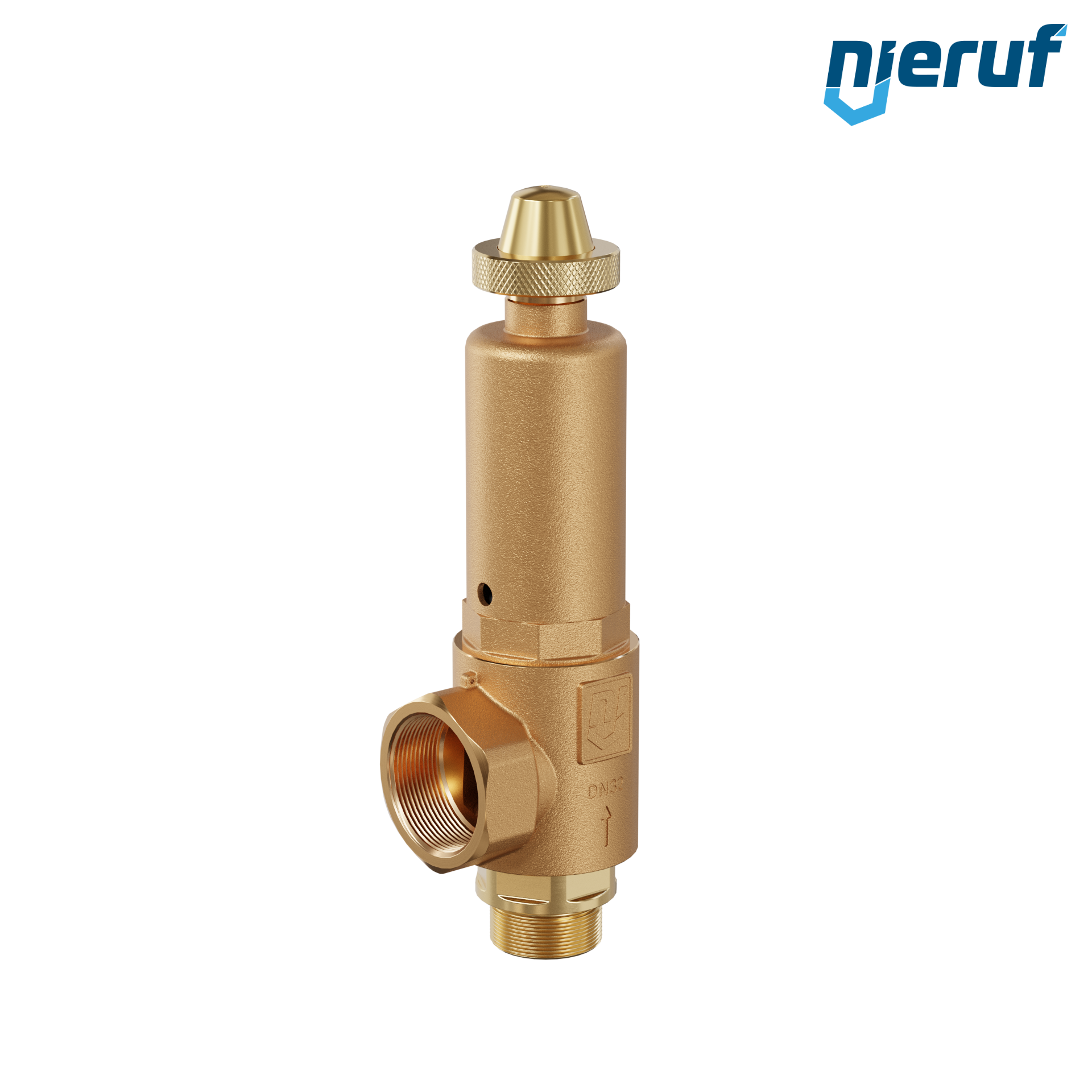 valvola di sicurezza 1 1/2" filettatura esterna BSP-P SV07 per fluidi gassosi neutri in ottone rosso guarnizione FKM impostazione della pressione 0,5 - 25,0 bar- per pressioni più elevate è possibile avere la versione in PTFE