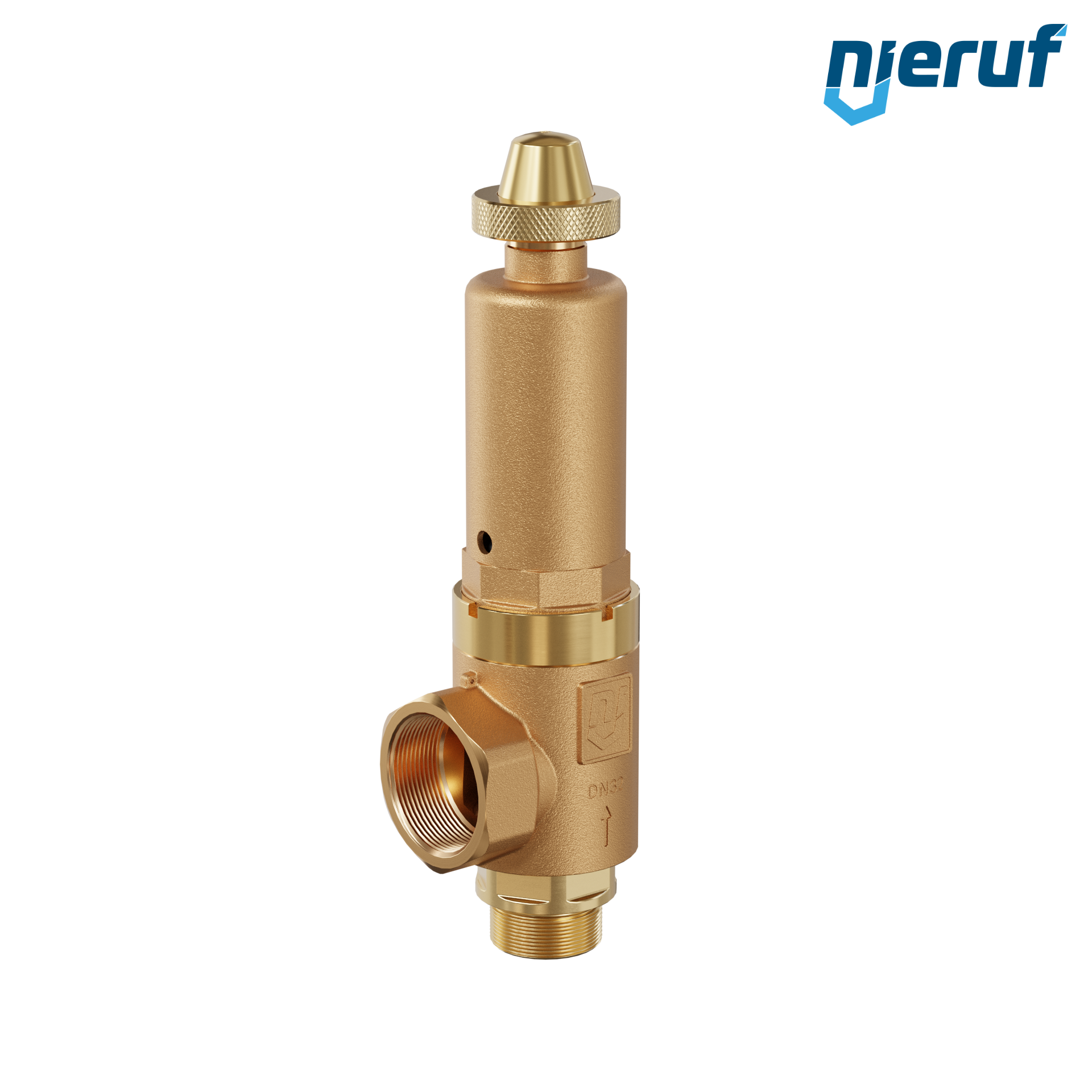 valvola di sicurezza ad angolo 1 1/2" M x 2" F con manicotto di tenuta e meccanismo di sollevamento rotazionale ottone rosso modello SV04 con filettatura esterna BSP-P EPDM-guarnizione per fluidi liquidi