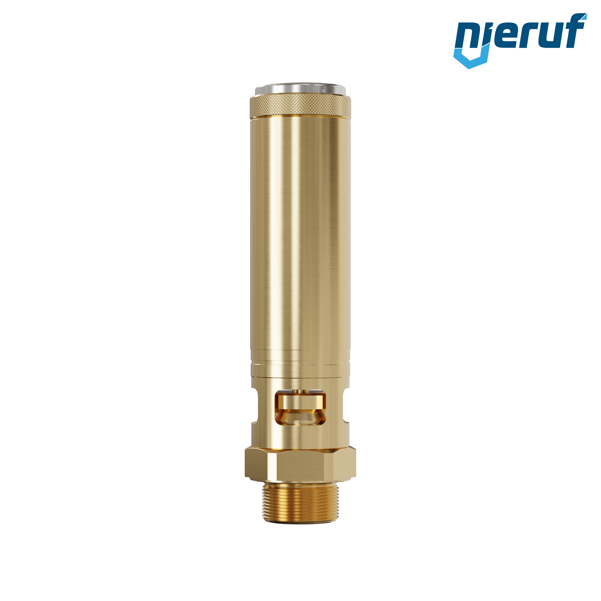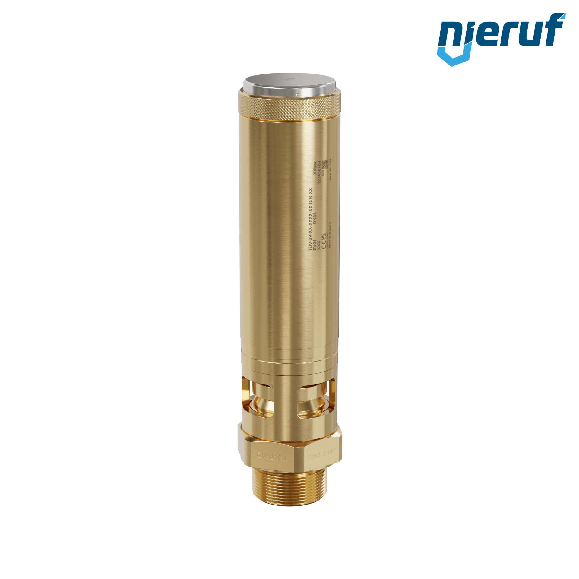valvola di sicurezza 1 1/4" M tipo SV01 con scarico della valvola libero per aria compressa ed applicazioni pneumatiche, in ottone con tenuta in FKM , taratura pressione 0,2 - 25,0 bar- per pressioni più elevate è possibile avere la versione in PTFE