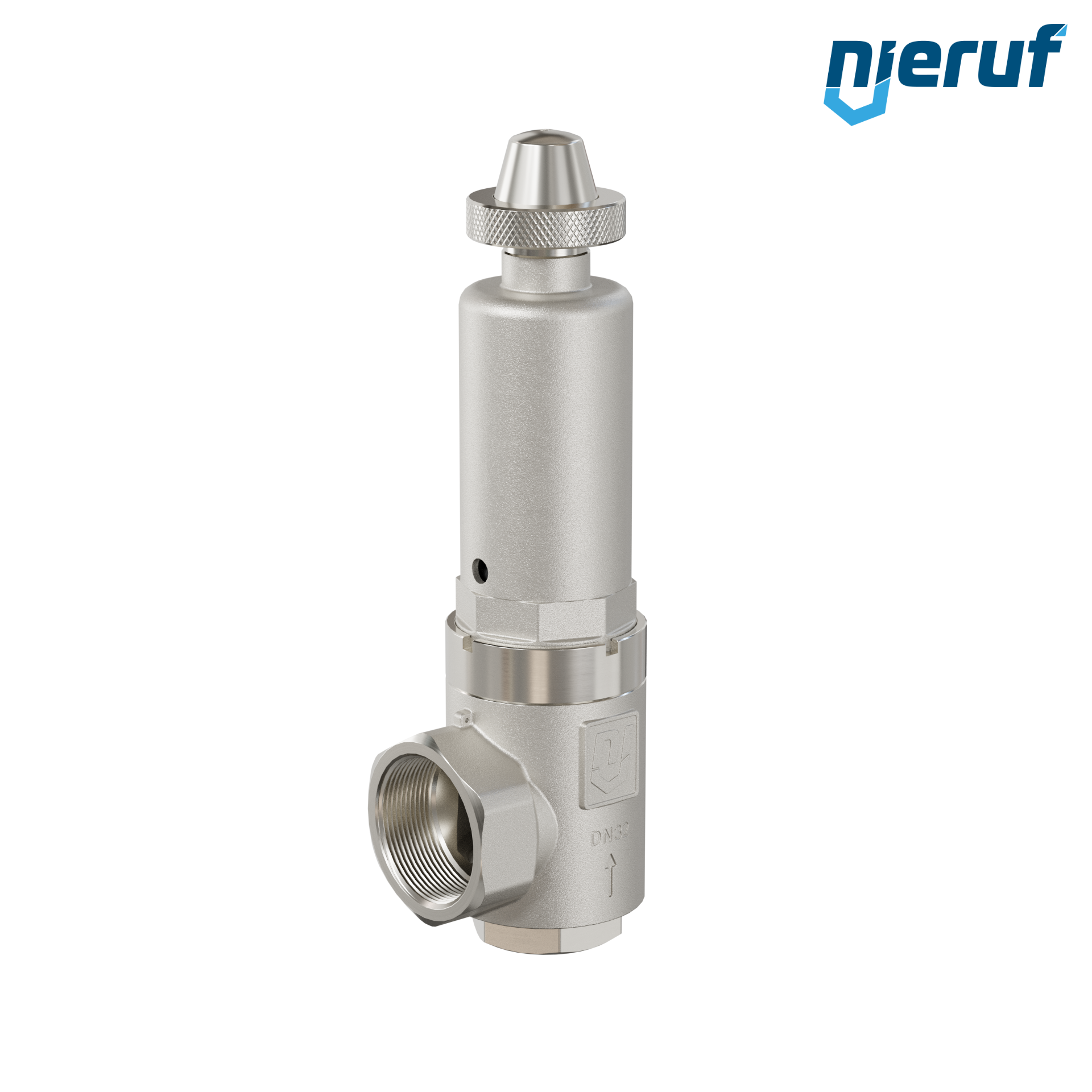 valvola di sicurezza acciaio inox 1 1/4" x 2" F con manicotto di tenuta modello SV06 con filettatura interna BSP-P PTFE-guarnizione per fluidi liquidi con meccanismo di sollevamento rotazionale