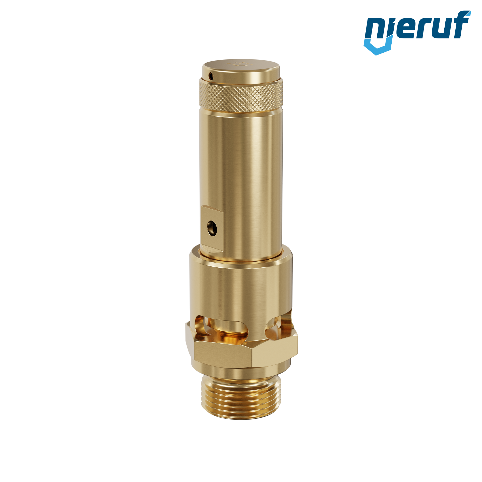 valvola di sicurezza 1/2" M tipo SV01 con scarico della valvola libero per aria compressa ed applicazioni pneumatiche, in ottone con tenuta in FKM , taratura pressione 0,2 - 25,0 bar- per pressioni più elevate è possibile avere la versione in PTFE