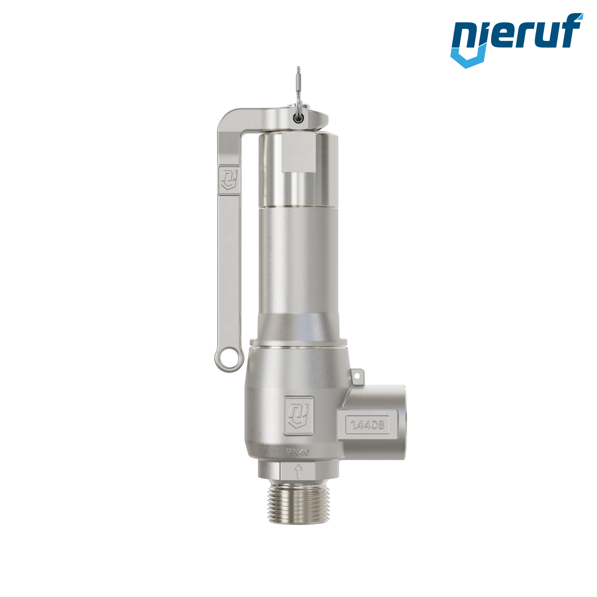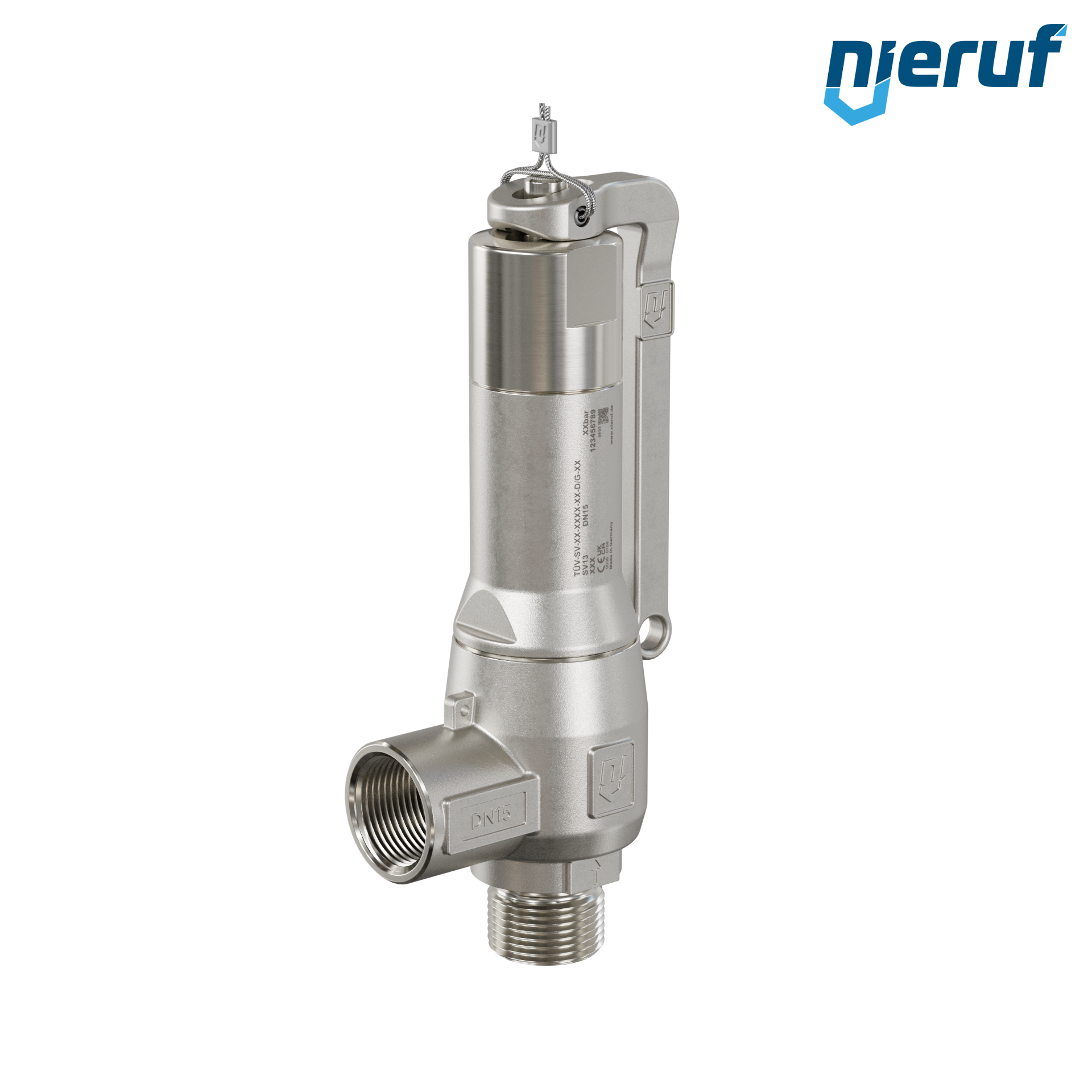 valvola di sicurezza 1/2" M NPT x 1/2" F SV13 per fluidi liquidi e gassosi in acciaio inox guarnizione NBR pressione 0,2 - 25,0 bar con leva