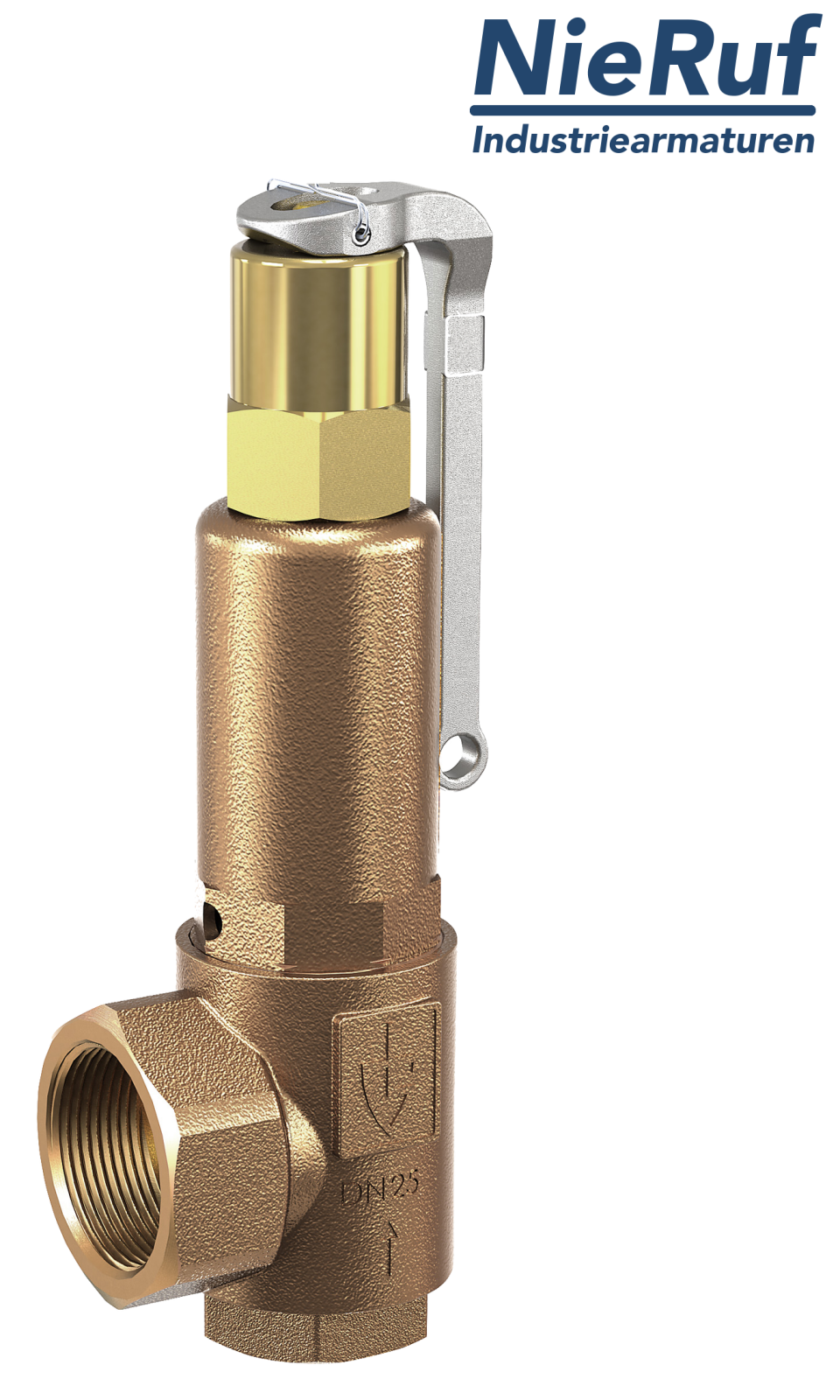 valvola di sicurezza con leva 1/2" x 1" F ottone rosso modello SV03 con filettatura interna BSP-P EPDM-guarnizione per fluidi liquidi neutri senza manicotto di tenuta