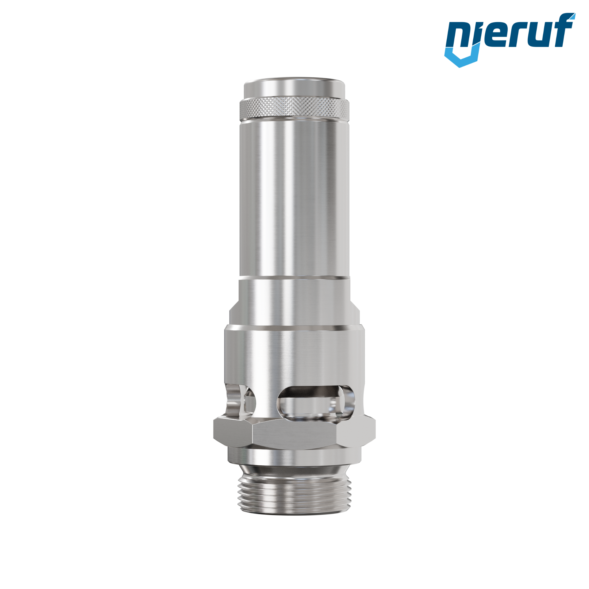 valvola di sicurezza 1" M tipo SV02 con scarico della valvola libero per aria compressa ed applicazioni pneumatiche, in acciaio inox con tenuta in FKM , taratura pressione 0,2 - 25,0 bar- per pressioni più elevate è possibile avere la versione in PTFE
