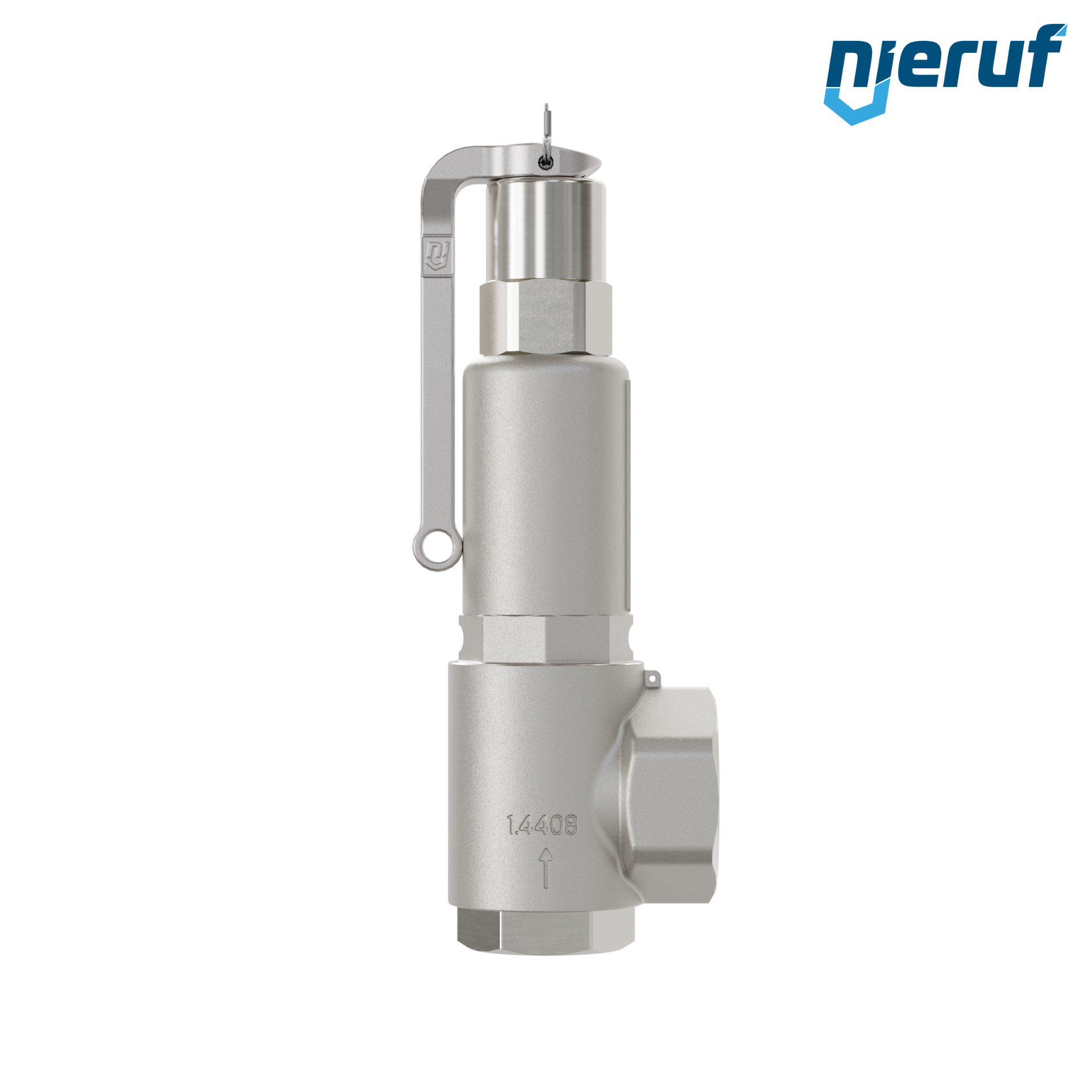 valvola di sicurezza 1" x 1 1/2" F con con leva SV09 per fluidi gassosi neutri in acciaio inox guarnizione FKM impostazione della pressione 0,5 - 25,0 bar- per pressioni più elevate è possibile avere la versione in PTFE