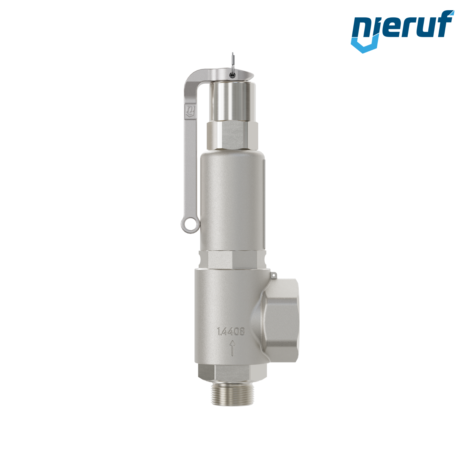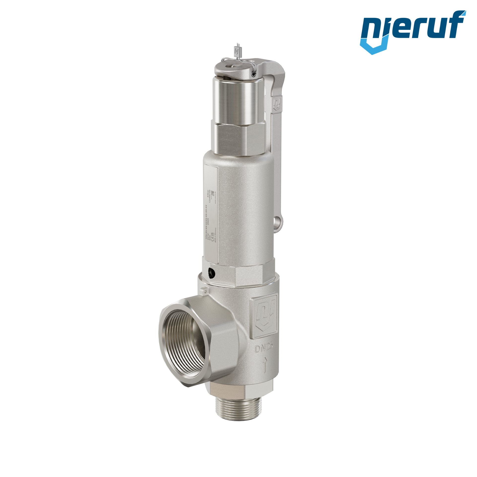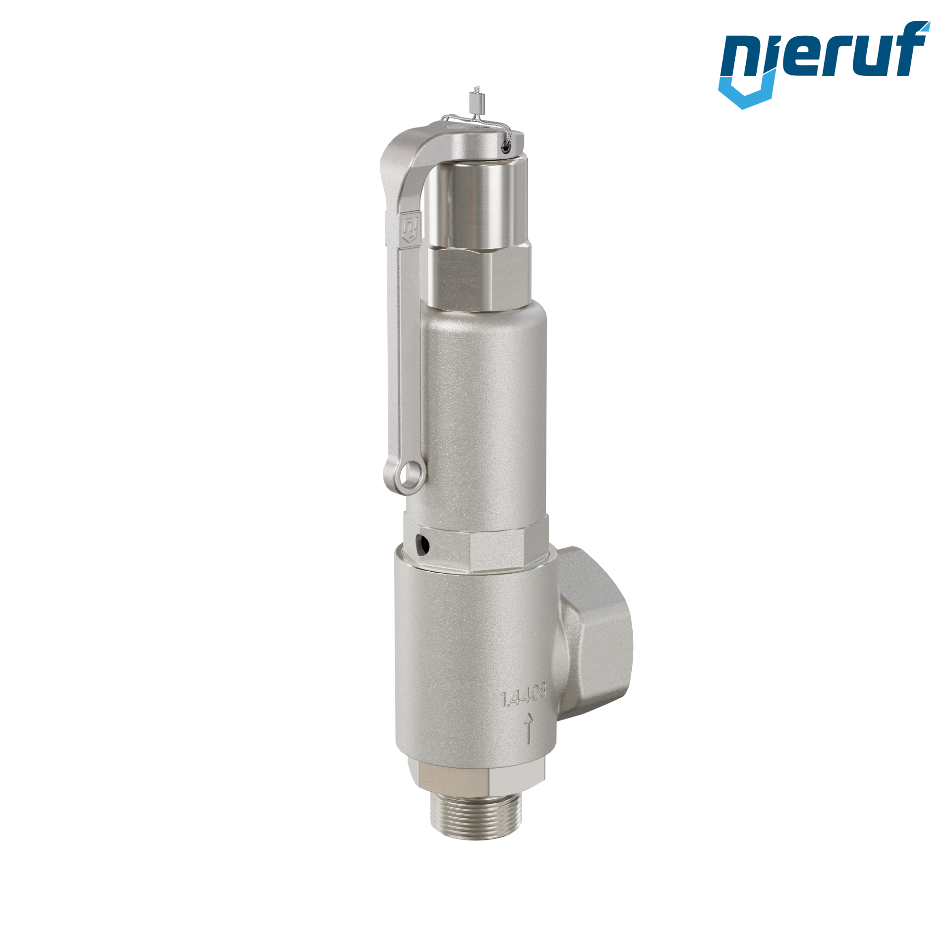 valvola di sicurezza 1" M x 1 1/2" F filettatura esterna BSP-P SV10 per fluidi gassosi in acciaio inox guarnizione NBR impostazione della pressione 0,5 - 25,0 bar- per pressioni più elevate è possibile avere la versione in PTFE con leva