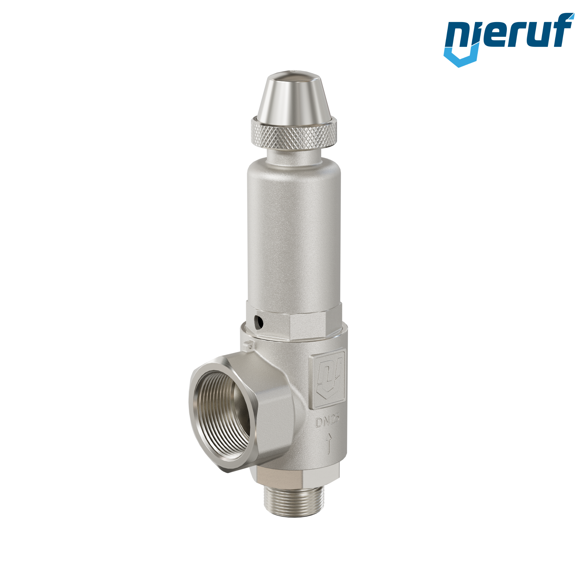 valvola di sicurezza con manicotto di tenuta 1" M x 1 1/2" F SV10 per fluidi gassosi in acciaio inox guarnizione NBR impostazione della pressione 0,5 - 25,0 bar- per pressioni più elevate è possibile avere la versione in PTFE