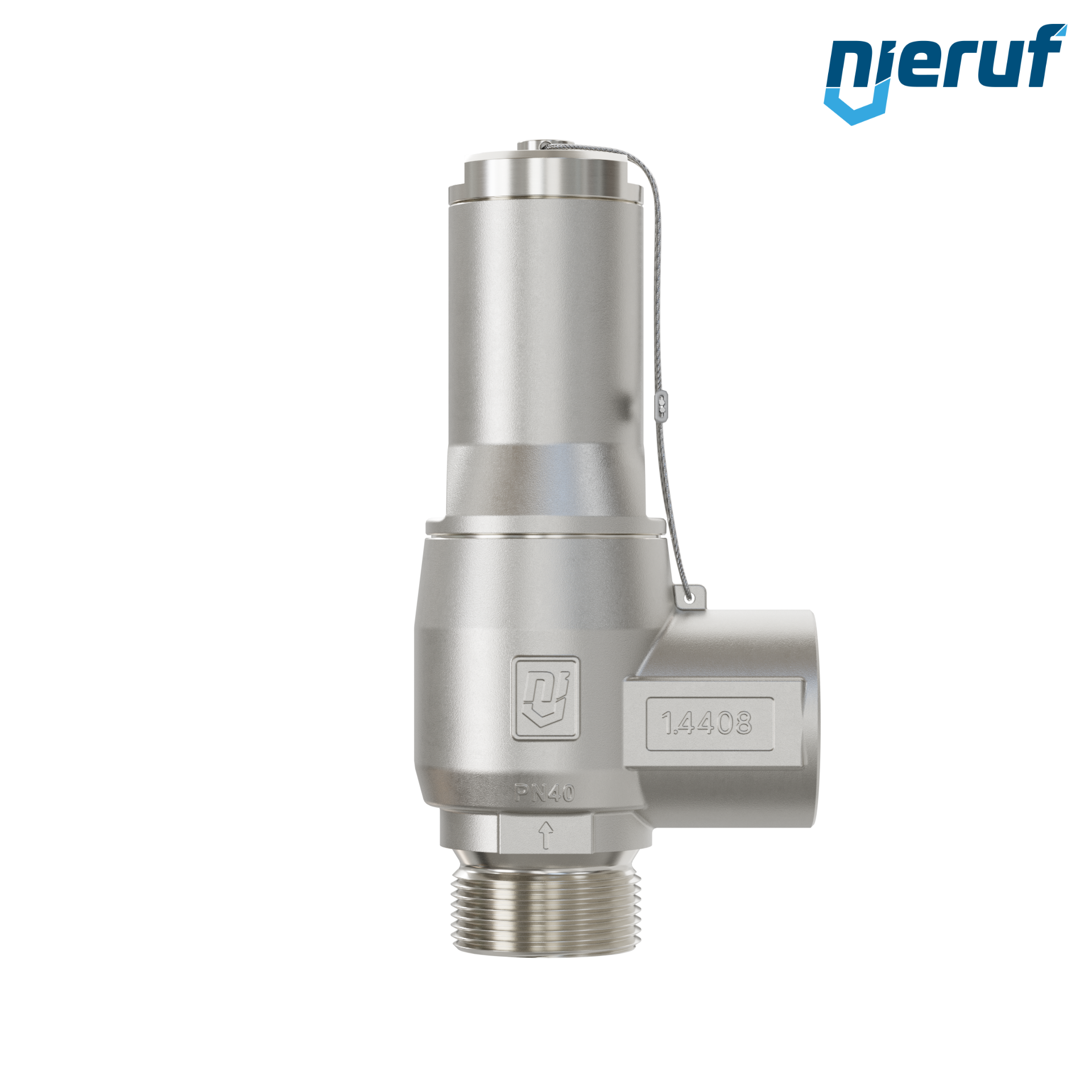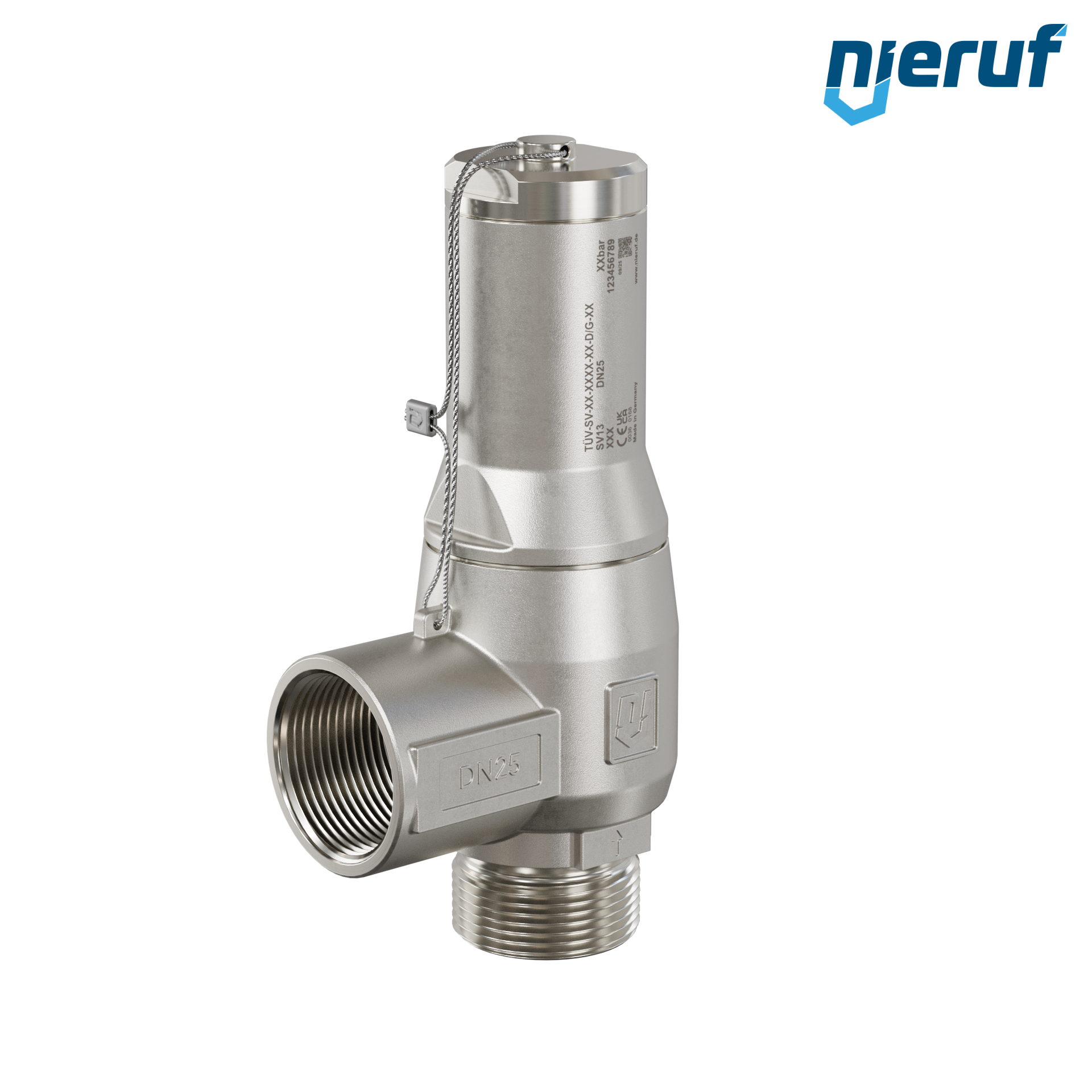 valvola di sicurezza 1" M x 1" F SV13 per fluidi liquidi e gassosi in acciaio inox guarnizione NBR pressione 0,2 - 25,0 bar senza leva