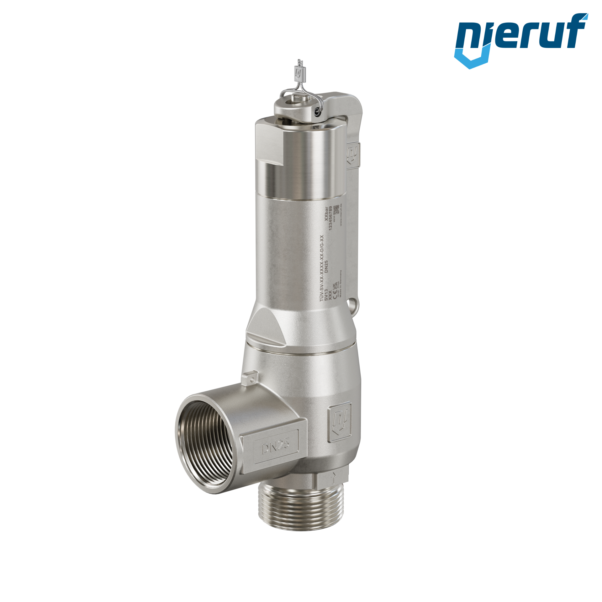 valvola di sicurezza 1" M x 1" F SV13 per fluidi liquidi e gassosi in acciaio inox guarnizione NBR pressione 0,2 - 25,0 bar con leva