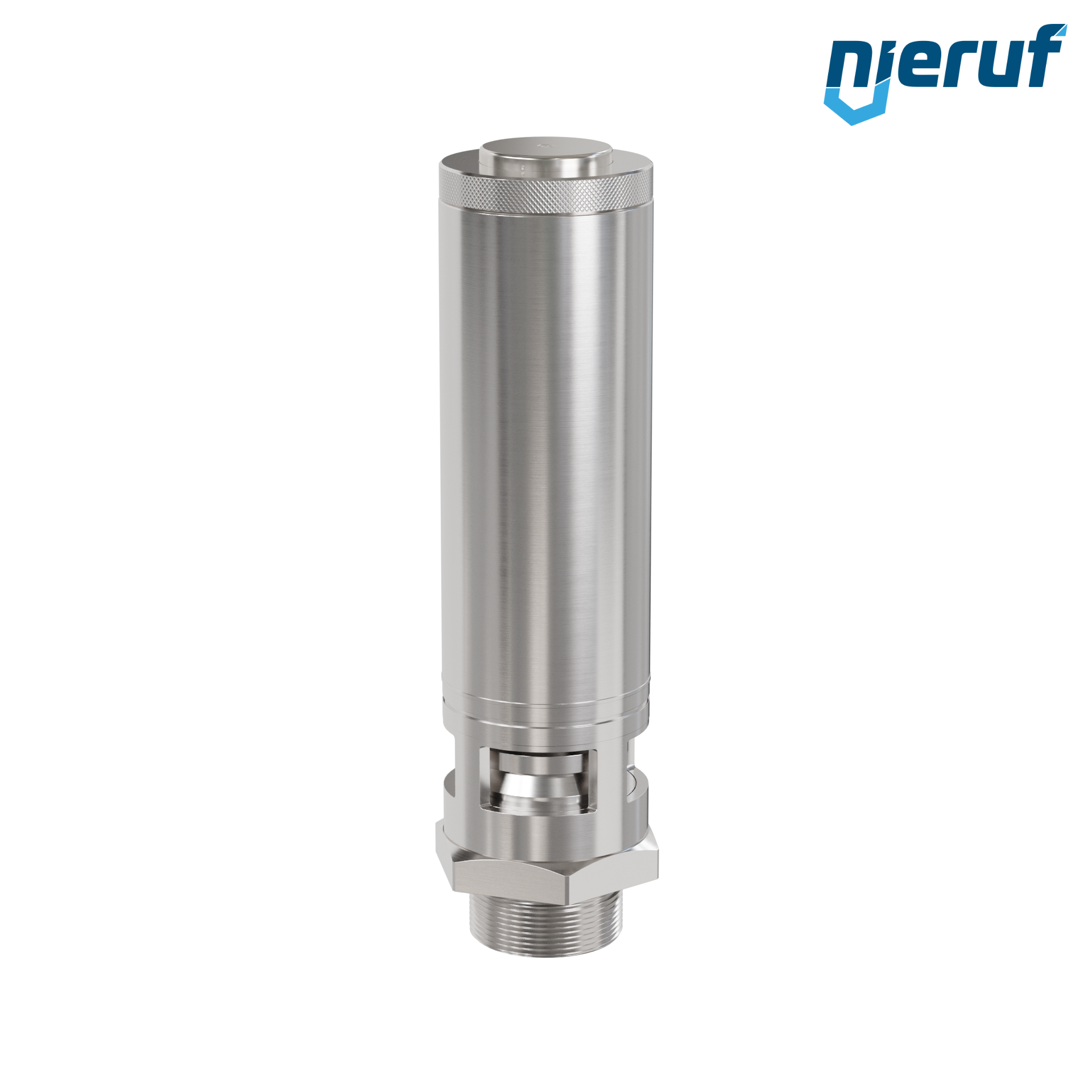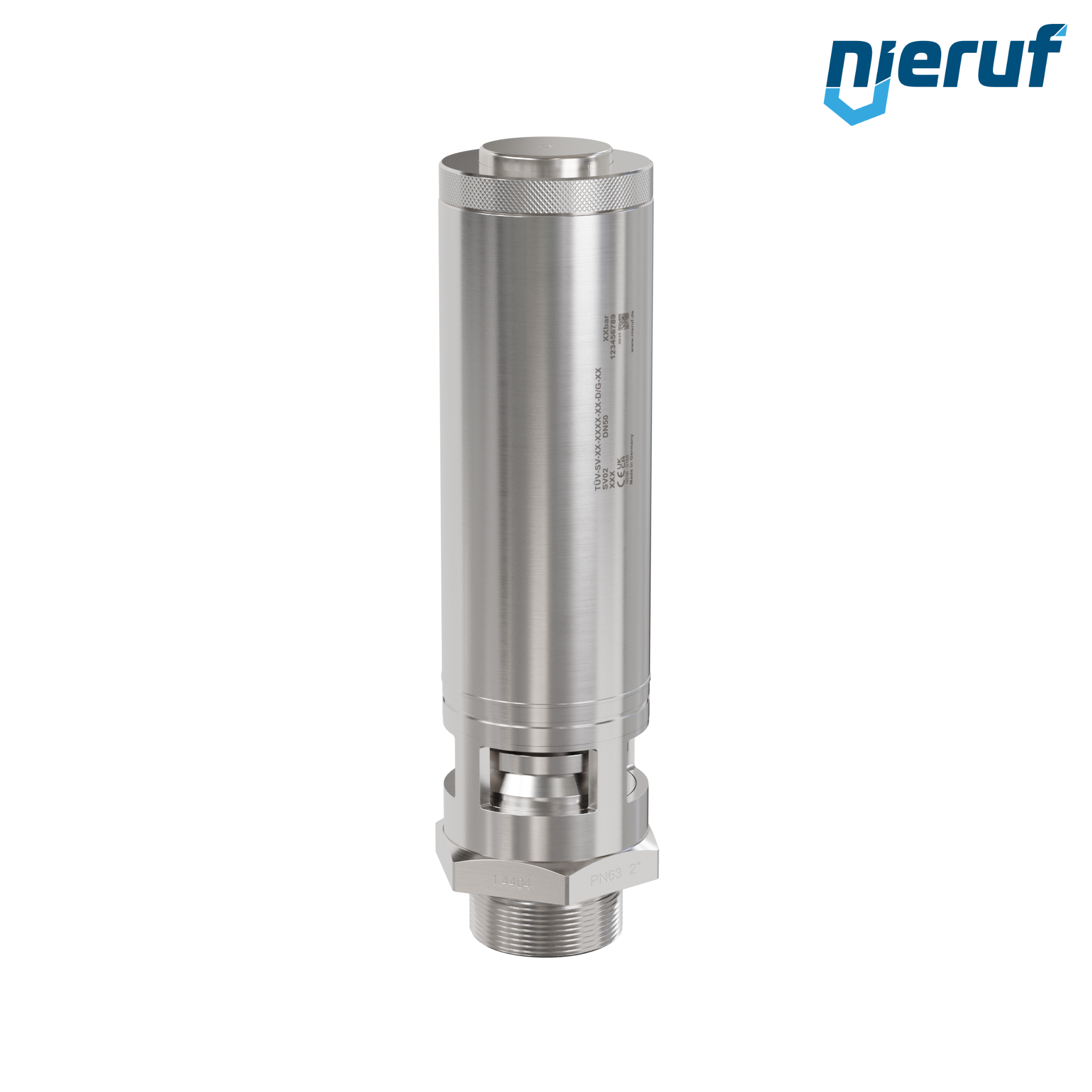 valvola di sicurezza 2" M tipo SV02 con scarico della valvola libero per aria compressa ed applicazioni pneumatiche, in acciaio inox con tenuta in FKM , taratura pressione 0,2 - 25,0 bar- per pressioni più elevate è possibile avere la versione in PTFE