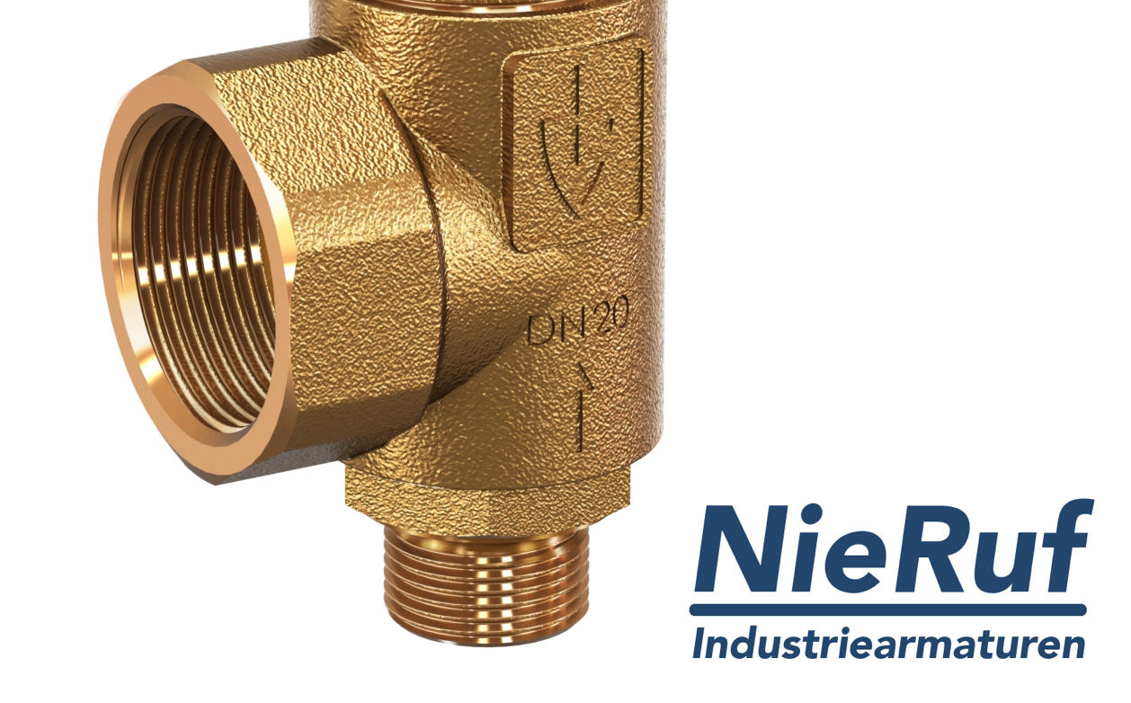valvola di sicurezza 3/4" M x 1 1/4" F filettatura esterna SV07 per fluidi gassosi neutri in ottone rosso guarnizione NBR impostazione della pressione 0,5 - 25,0 bar- per pressioni più elevate è possibile avere la versione in PTFE