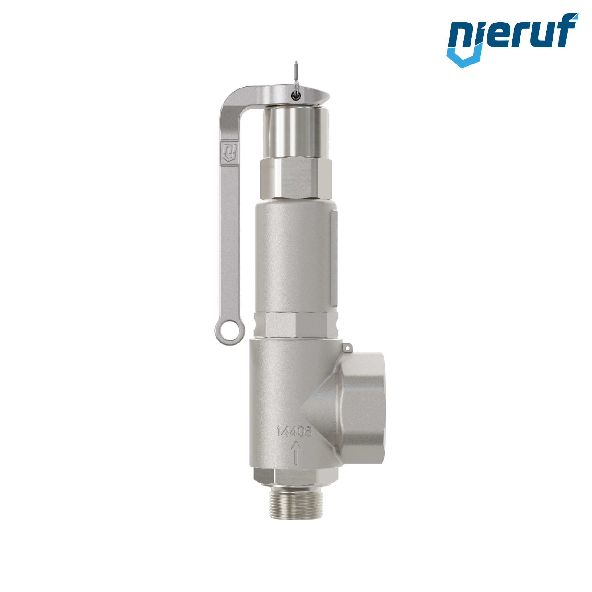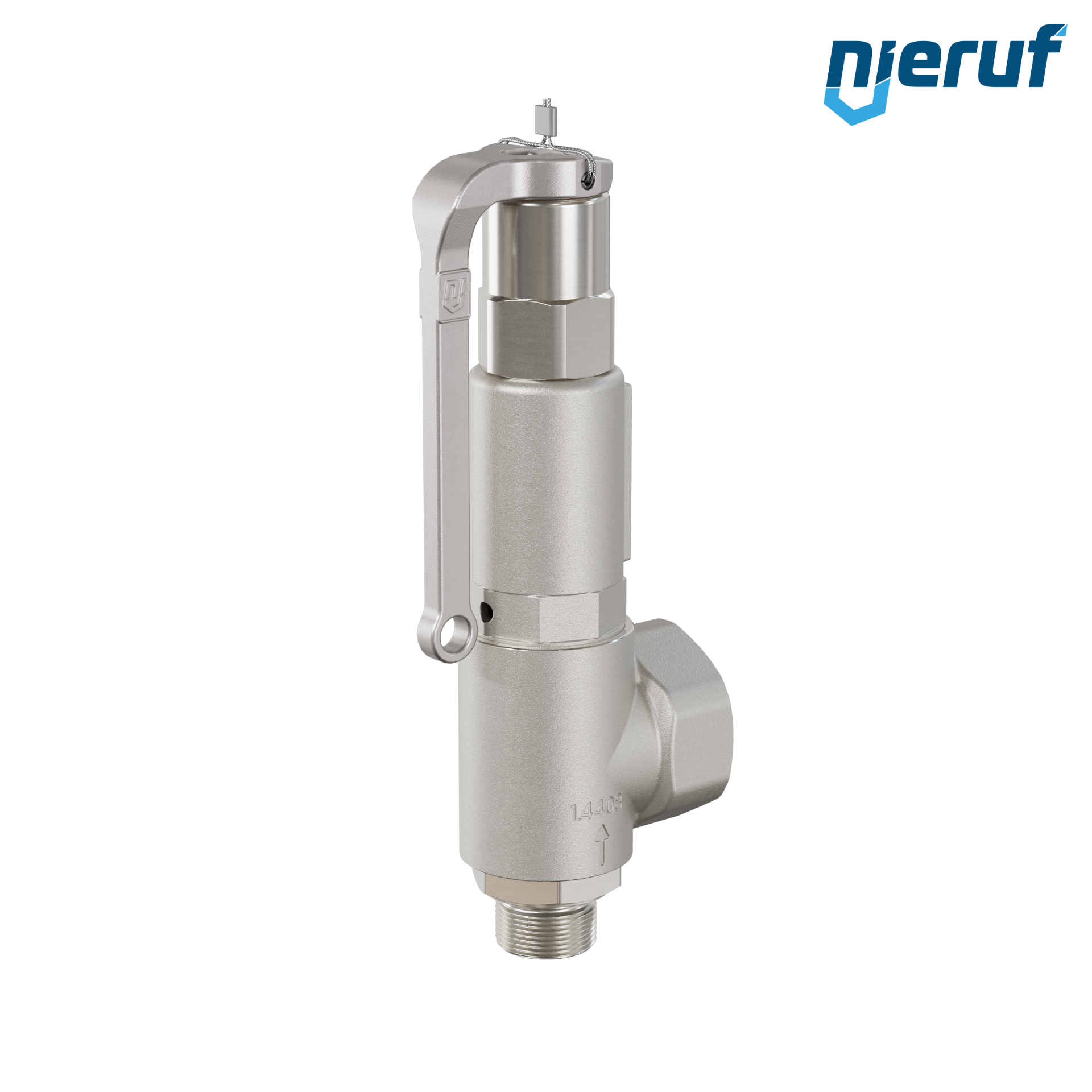 valvola di sicurezza con leva con manicotto di tenuta acciaio inox 3/4" M x 1 1/4" F modello SV06 con filettatura esterna BSP-P FKM-guarnizione per fluidi liquidi