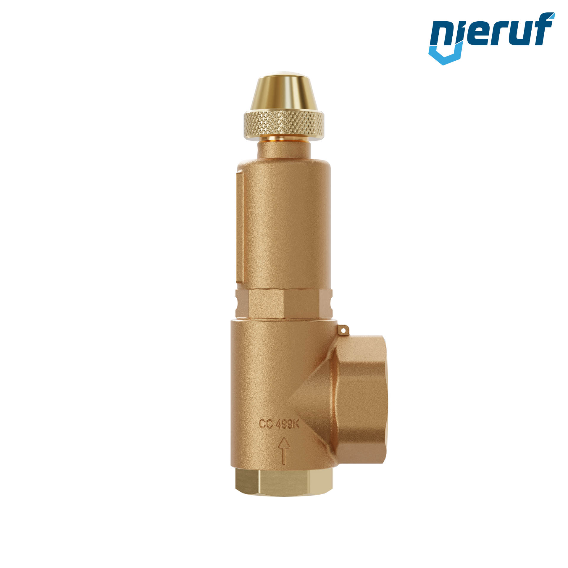 valvola di sicurezza 3/4" x 1 1/4" F impostazione della pressione 0,5 - 50,0 bar per fluidi gassosi neutri in ottone rosso guarnizione PTFE con un meccanismo di sollevamento rotazionale