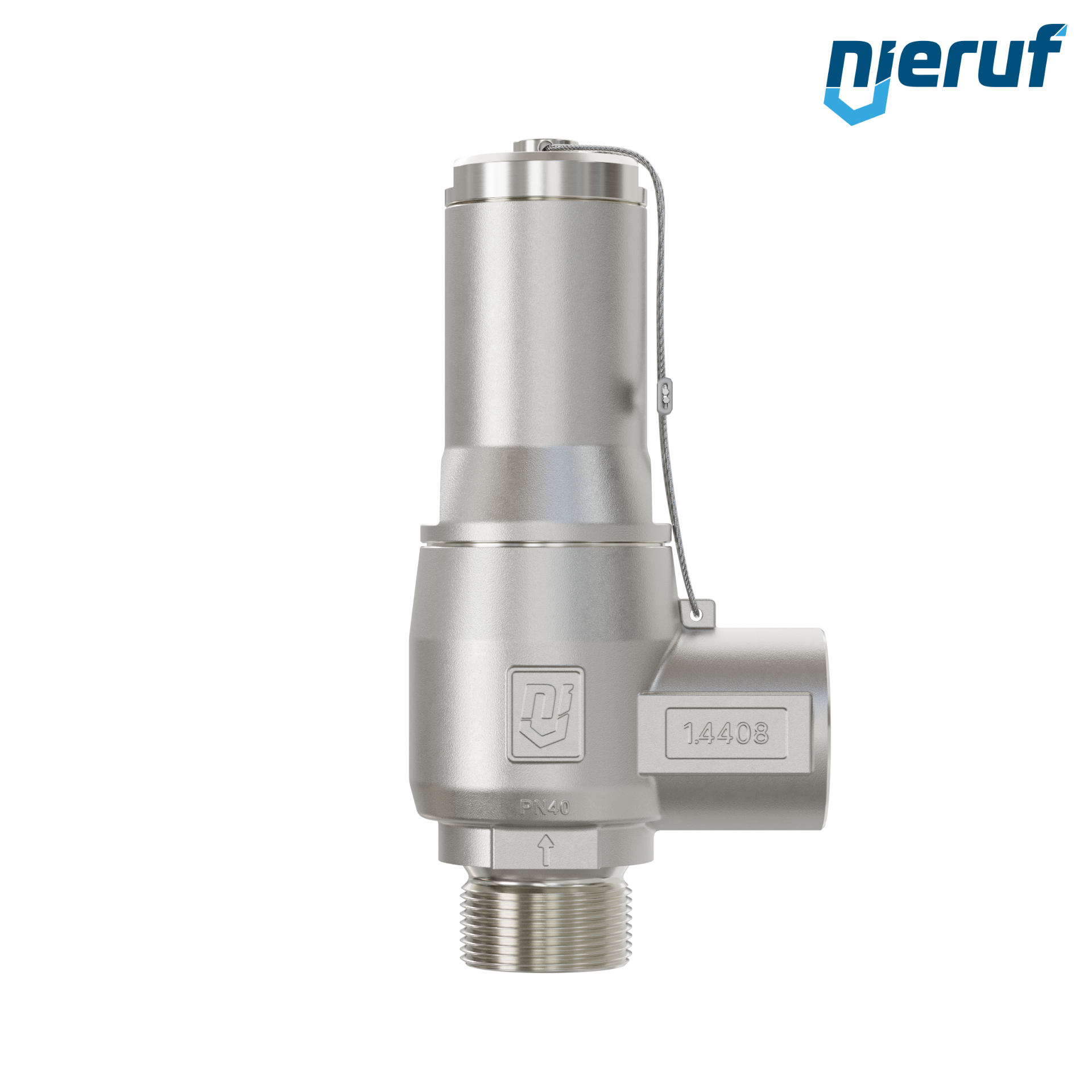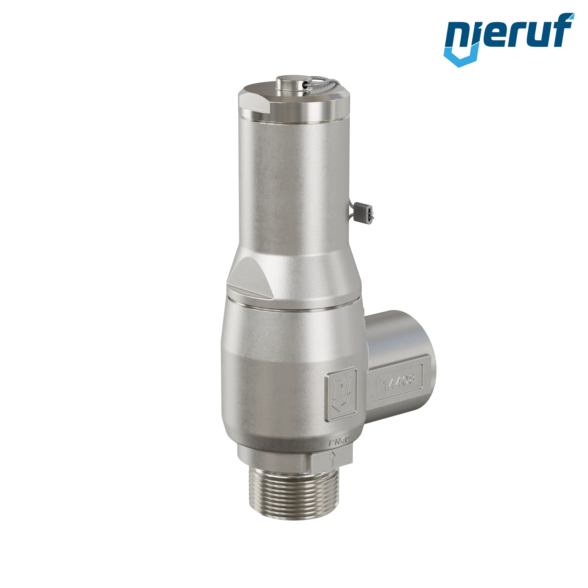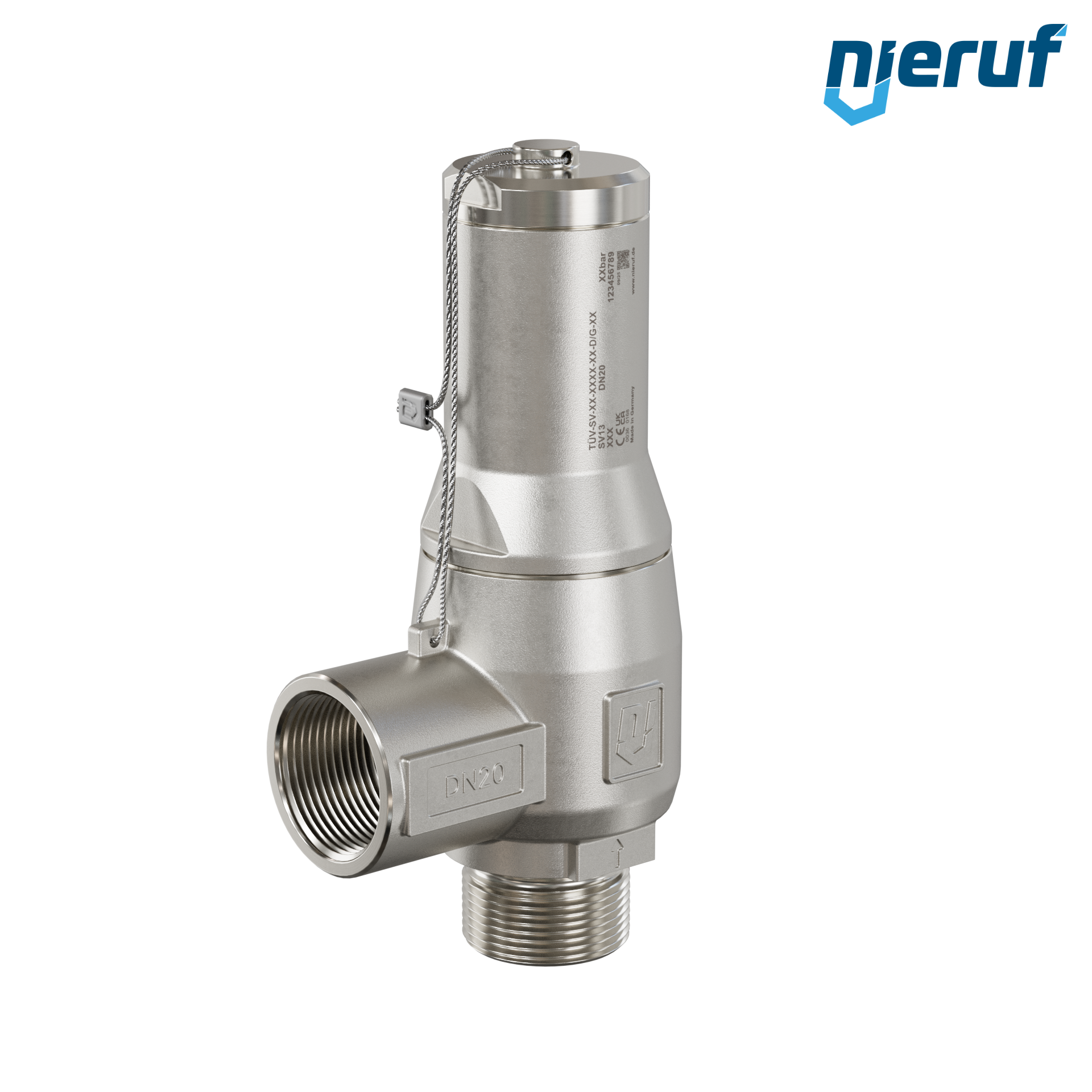 valvola di sicurezza 3/4" M NPT x 3/4" F SV13 per fluidi liquidi e gassosi in acciaio inox guarnizione PTFE pressione 0,5 - 25,0 bar senza leva