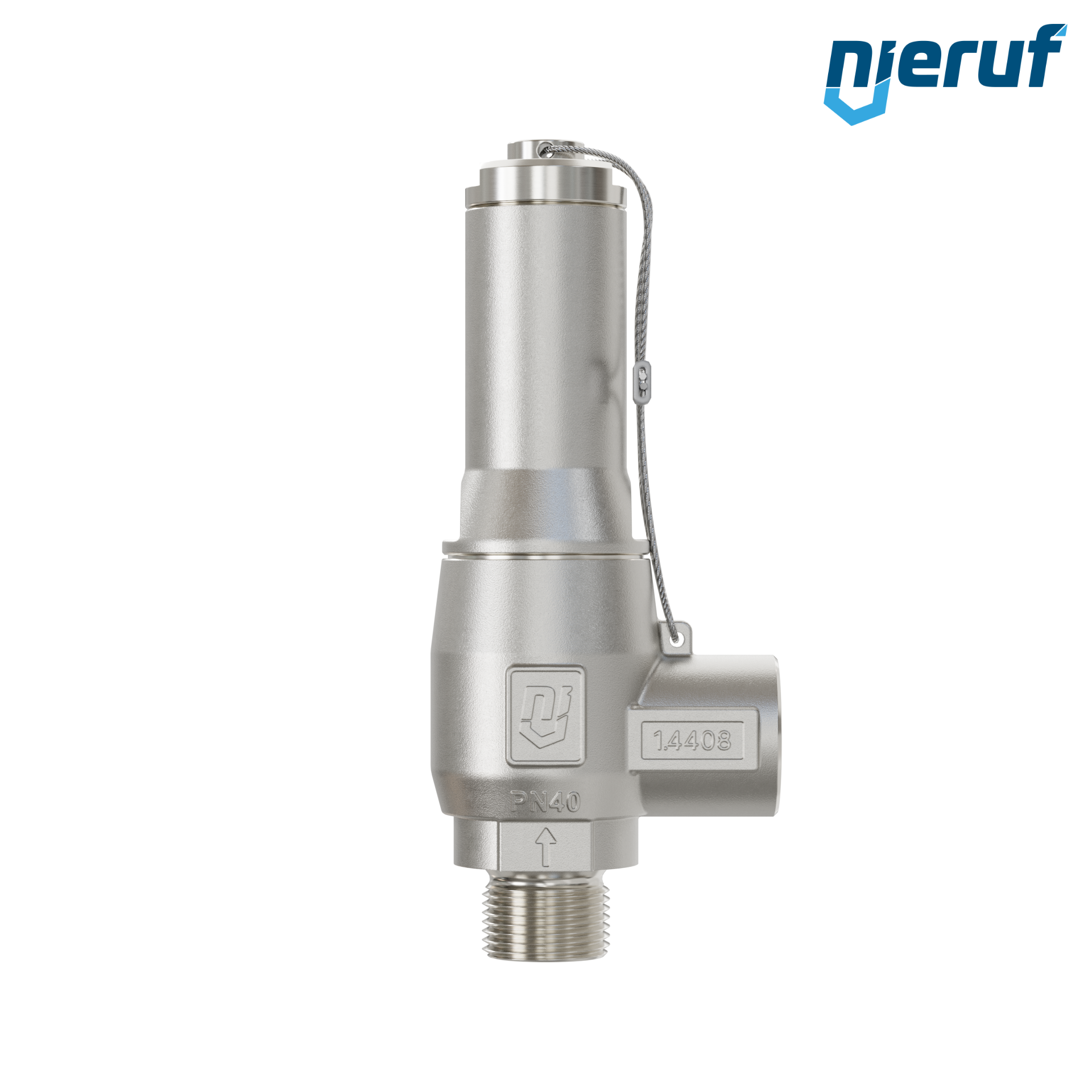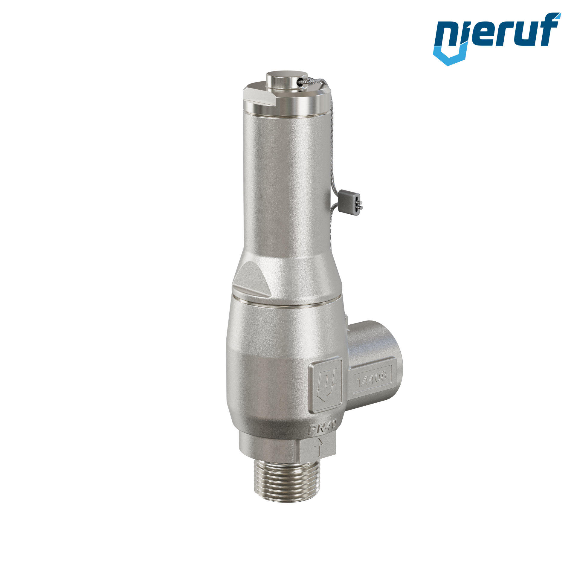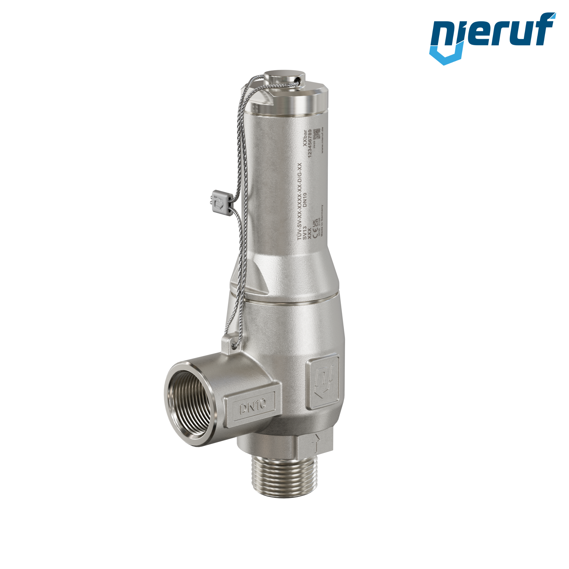 valvola di sicurezza 3/8" M NPT x 3/8" F SV13 per fluidi liquidi e gassosi in acciaio inox guarnizione EPDM pressione 0,2 - 25,0 bar senza leva