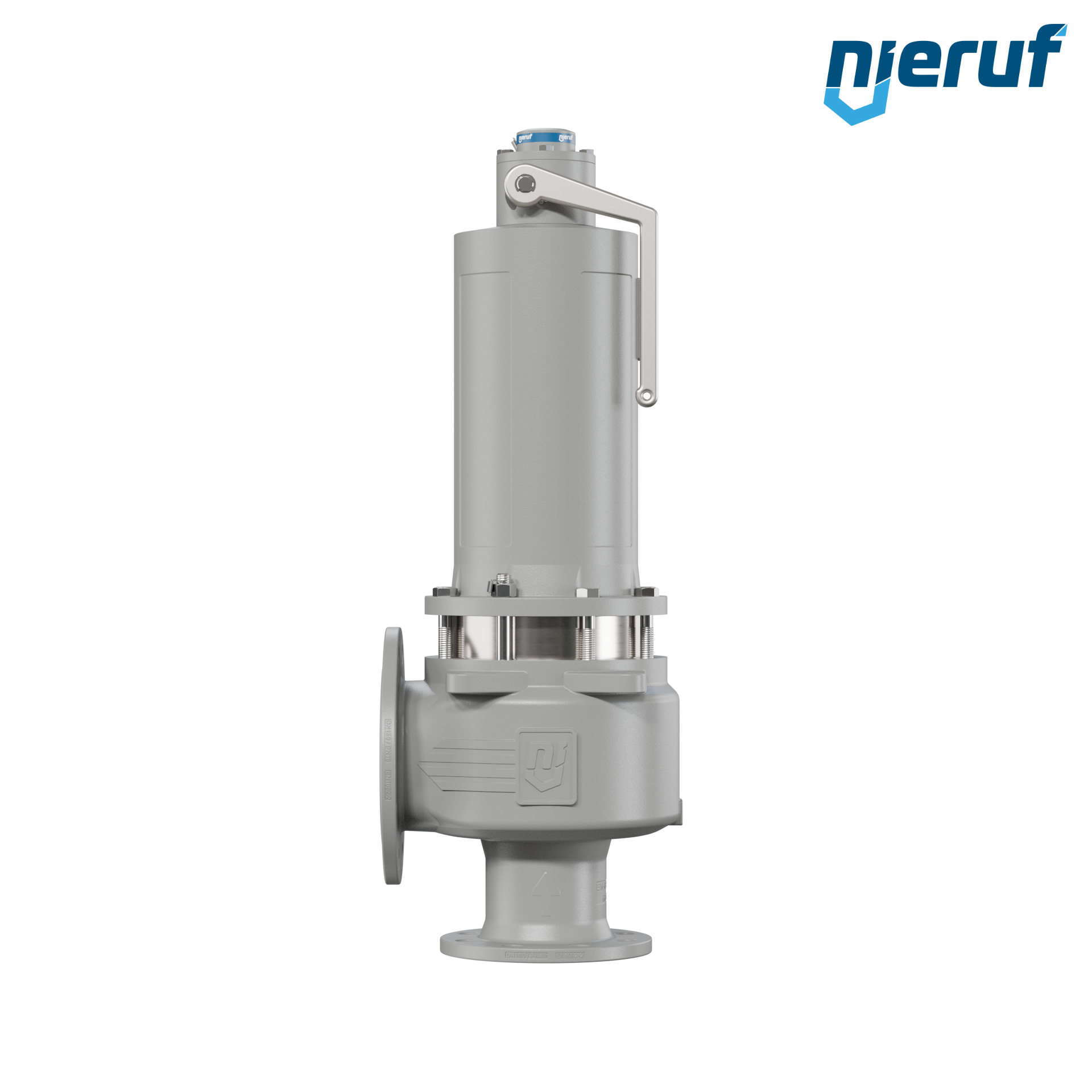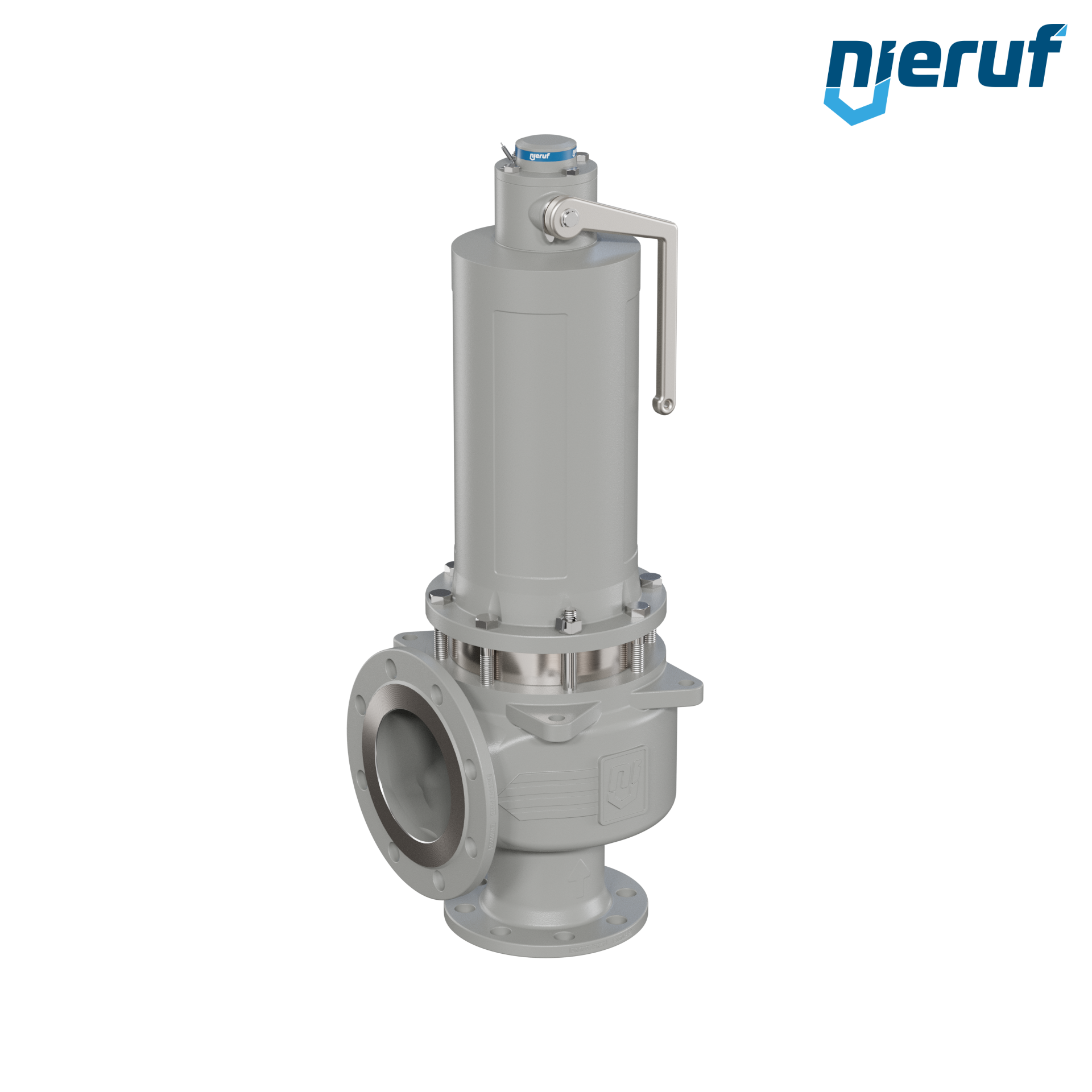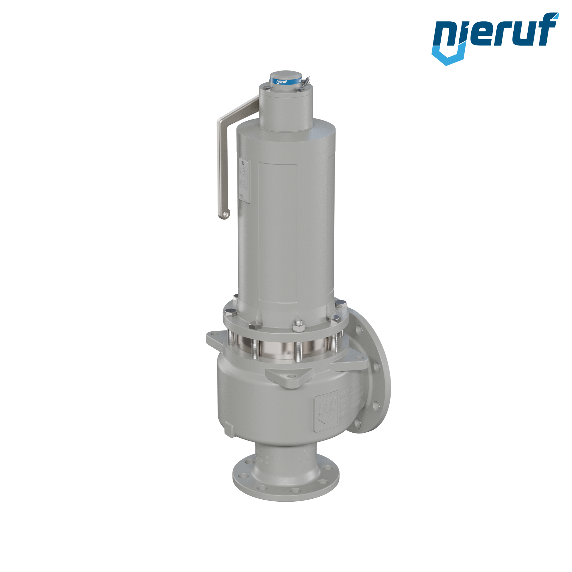 valvola di sicurezza flangiata a tenuta di gas DN100/DN150 SF06 per fluidi liquidi e gassosi in ghisa sferoidale DIN EN 5.3103 guarnizione FKM impostazione della pressione 0,2 - 40,0 bar dispositivo di sollevamento con leva con manicotto di tenuta