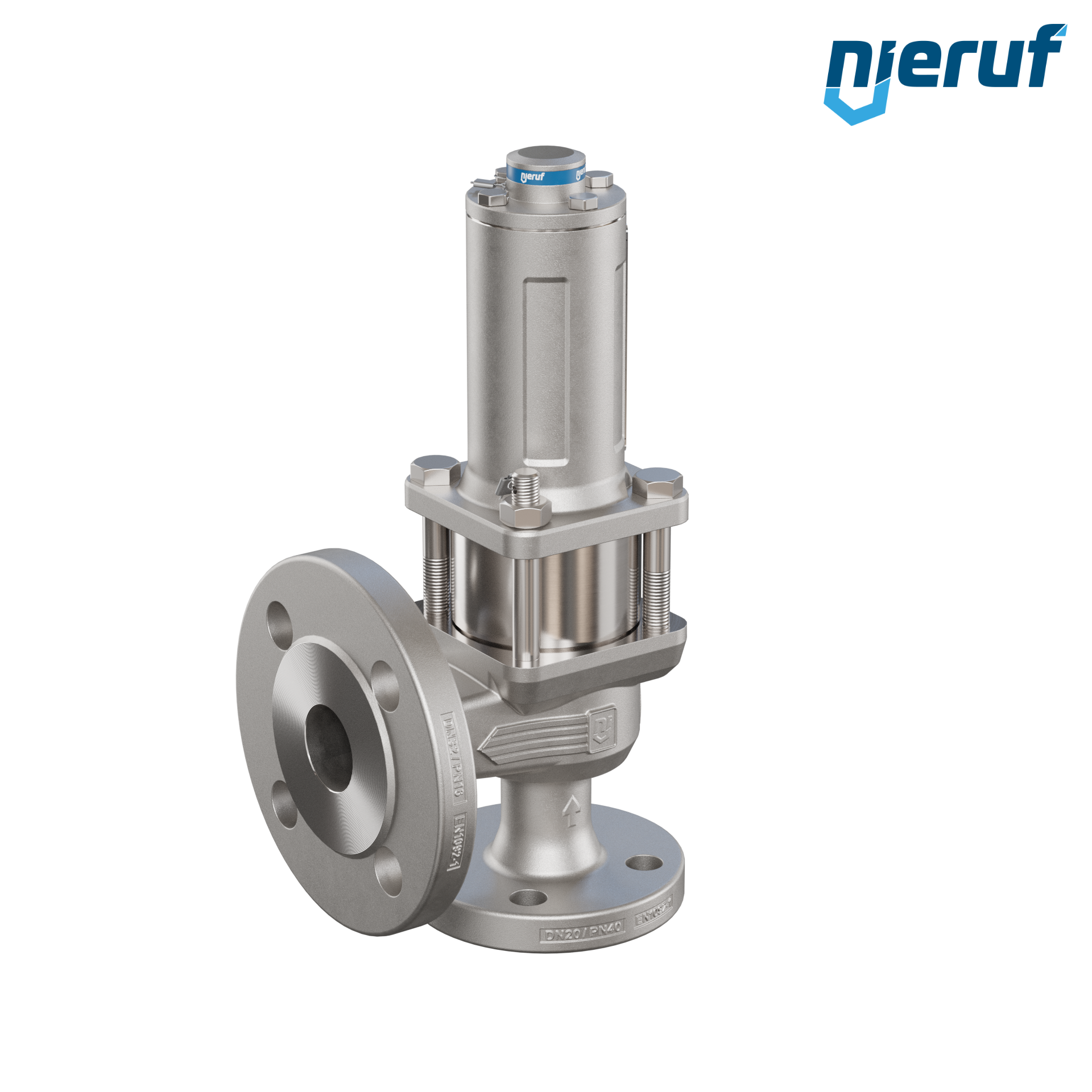 valvola di sicurezza DN20/DN32 SF04 con manicotto di tenuta a gas in acciaio inox 1.4408 guarnizione PTFE impostazione della pressione 1,5 - 40,0 bar
