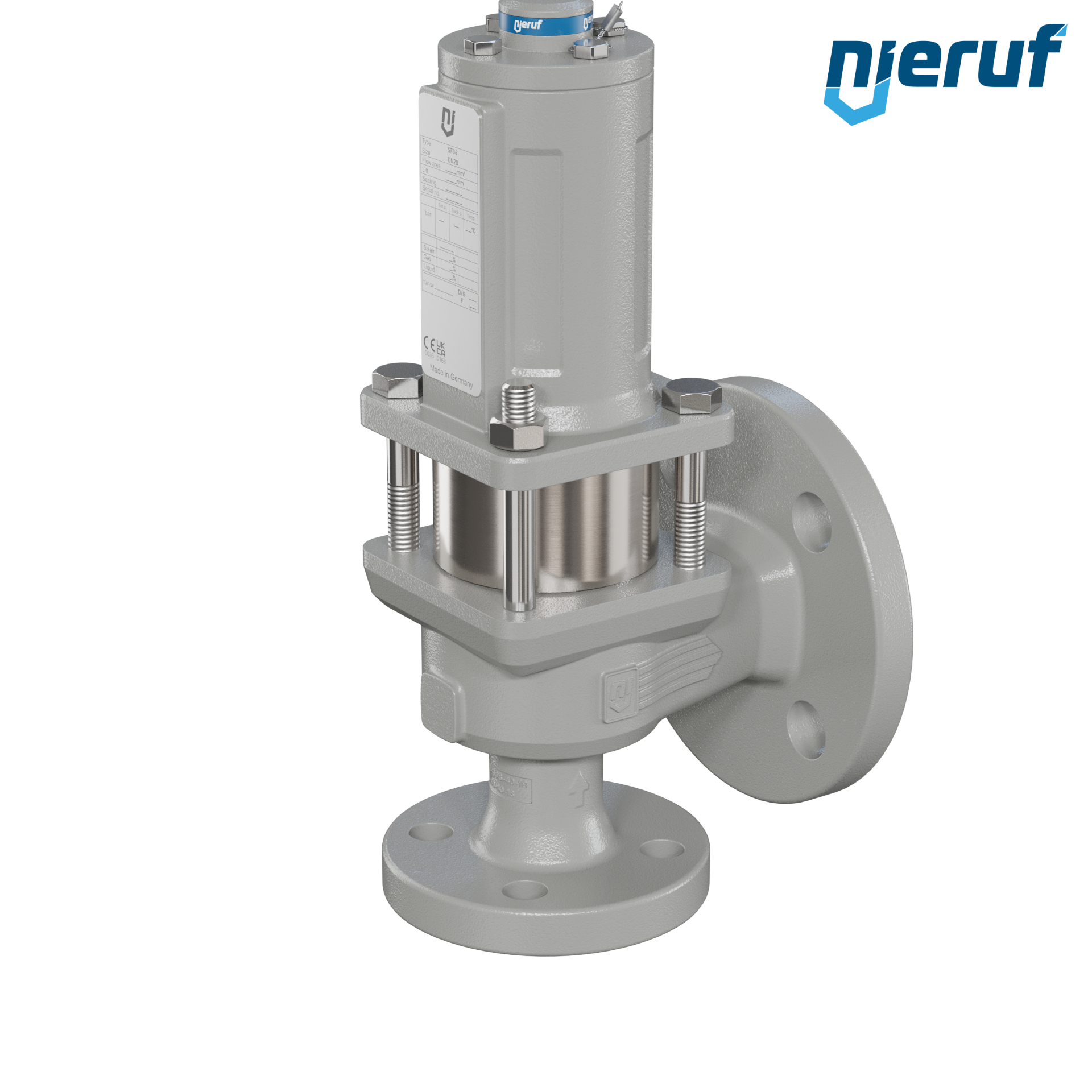 valvola di sicurezza flangiata a tenuta di gas DN20/DN32 SF06 per fluidi liquidi e gassosi in ghisa sferoidale DIN EN 5.3103 guarnizione FKM impostazione della pressione 0,4 - 40,0 bar senza dispositivo di sollevamento con manicotto di tenuta