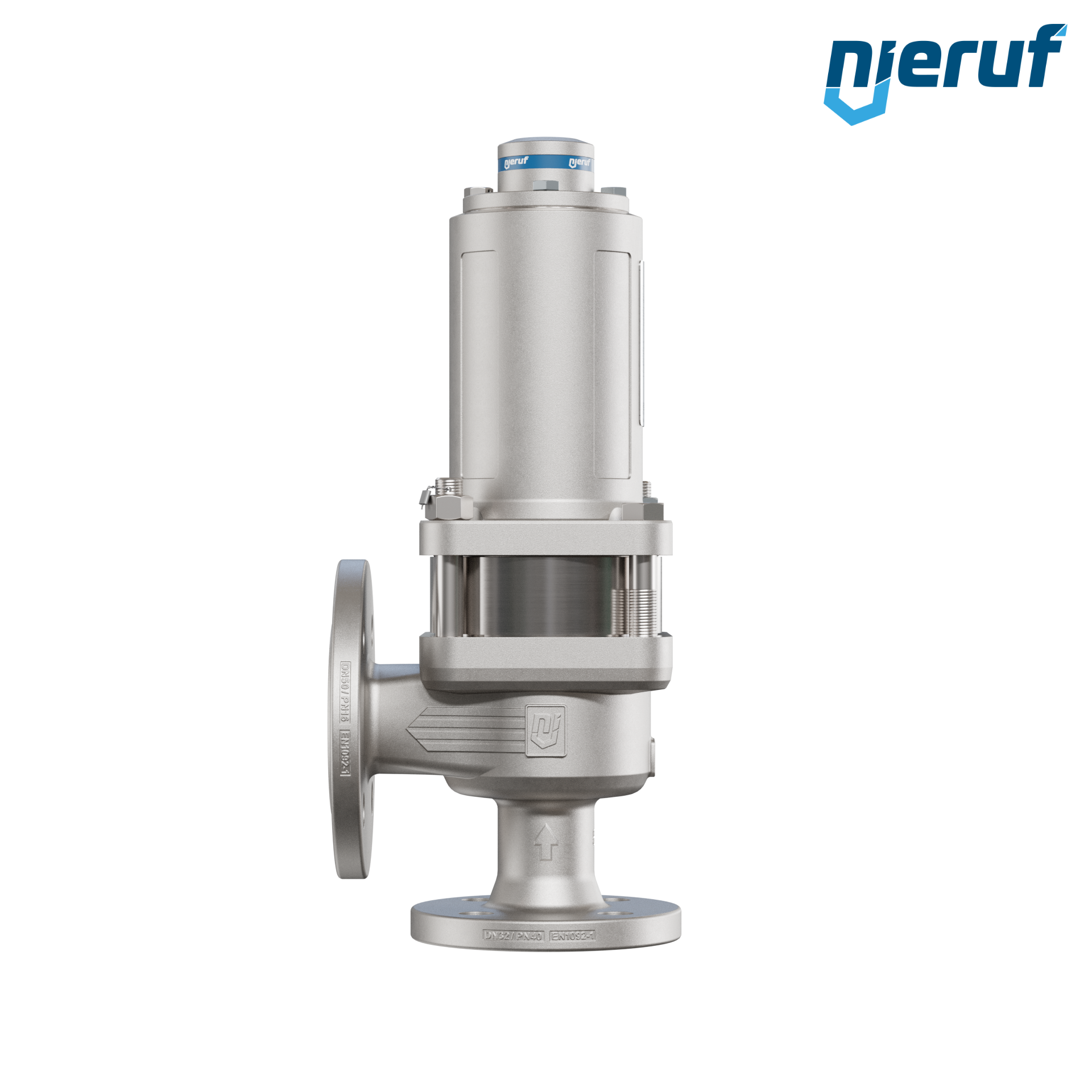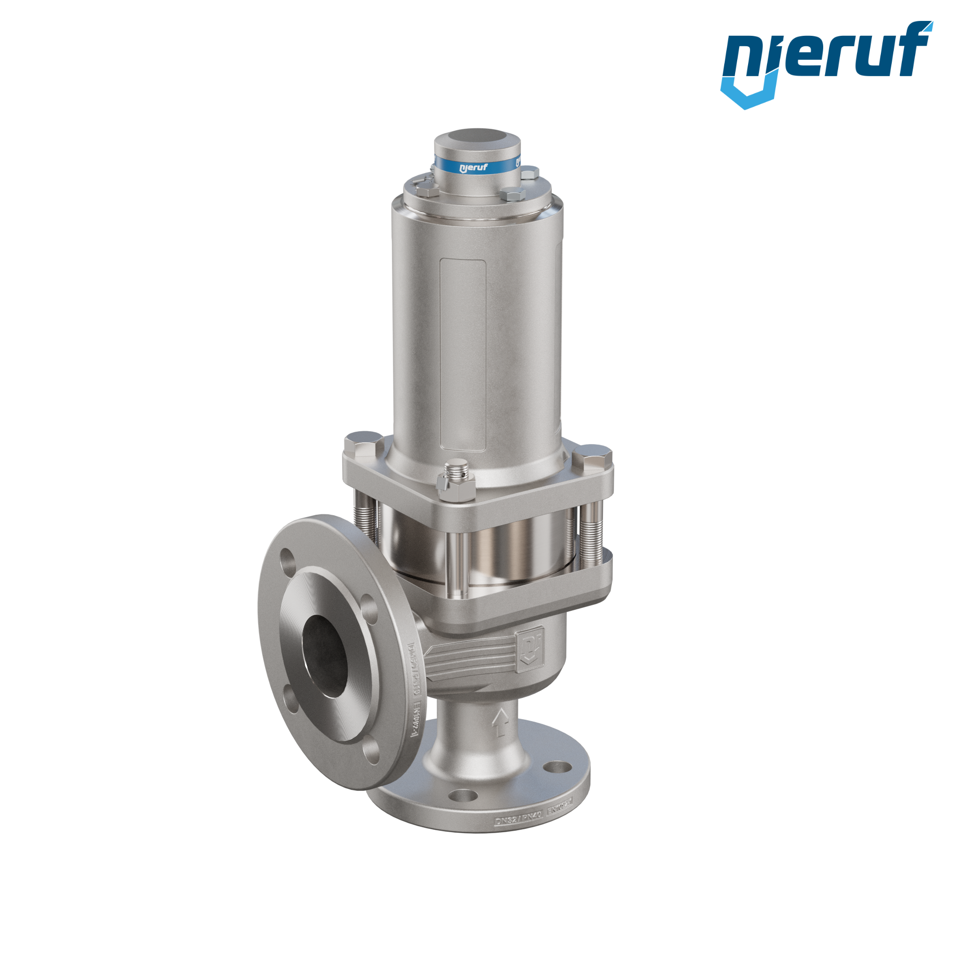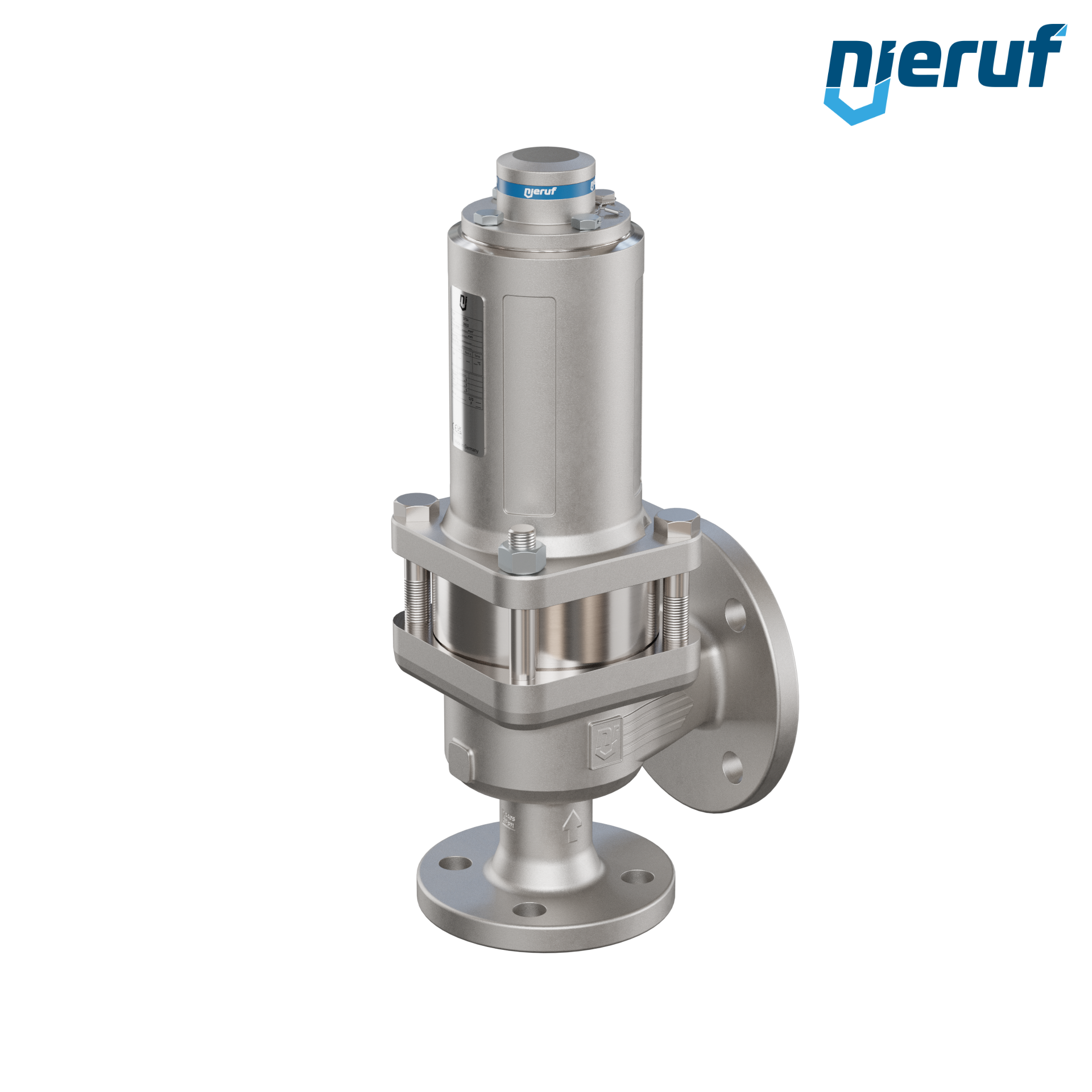 valvola di sicurezza DN32/DN50 SF04 con manicotto di tenuta a gas in acciaio inox 1.4408 guarnizione FKM impostazione della pressione 0,5 - 40,0 bar