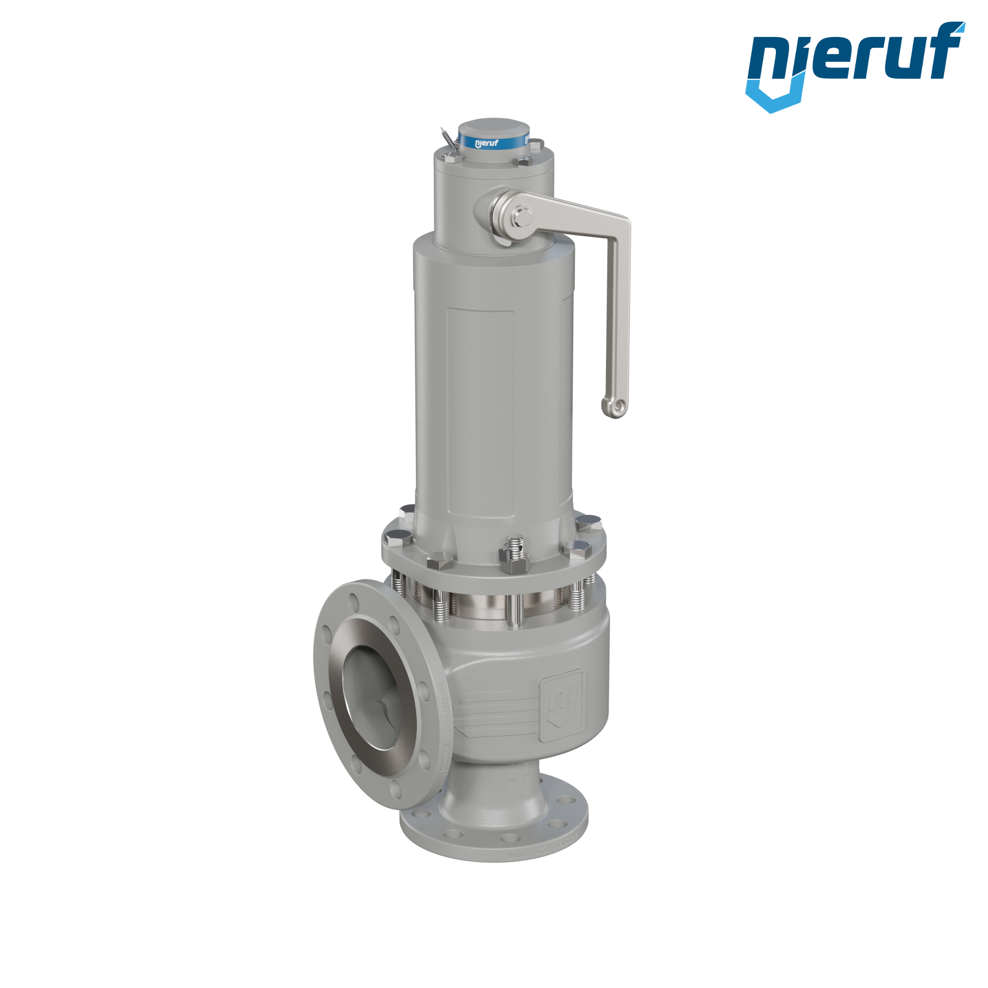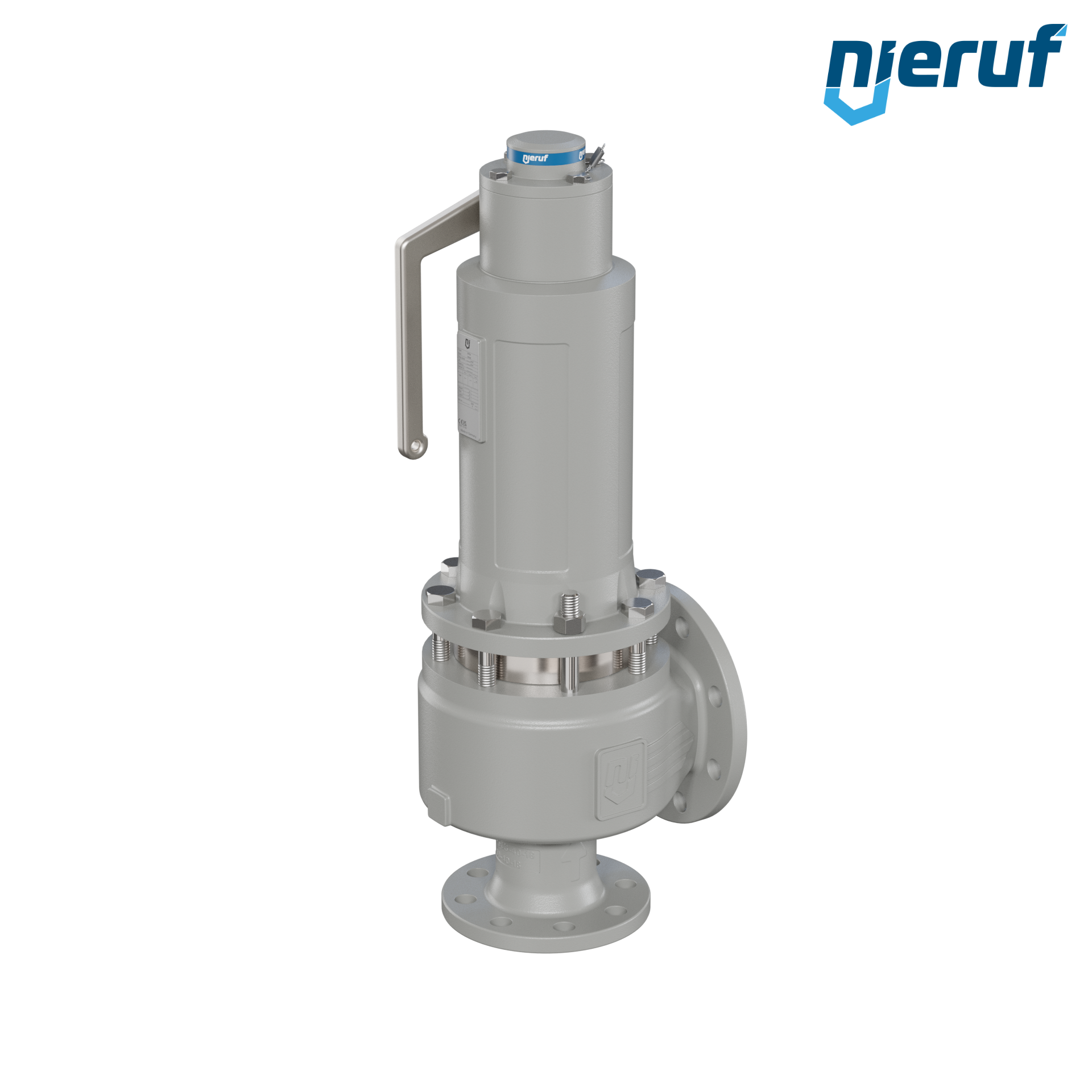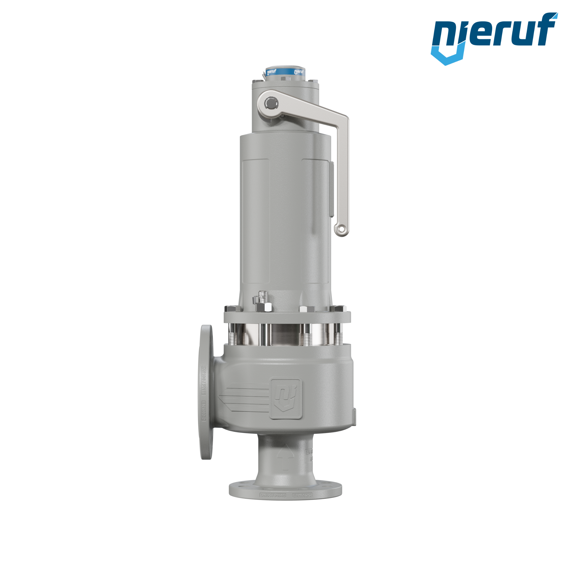 valvola di sicurezza flangiata a tenuta di gas DN65/DN100 SF06 per fluidi liquidi e gassosi in ghisa sferoidale DIN EN 5.3103 guarnizione FKM impostazione della pressione 0,2 - 40,0 bar dispositivo di sollevamento con leva con manicotto di tenuta