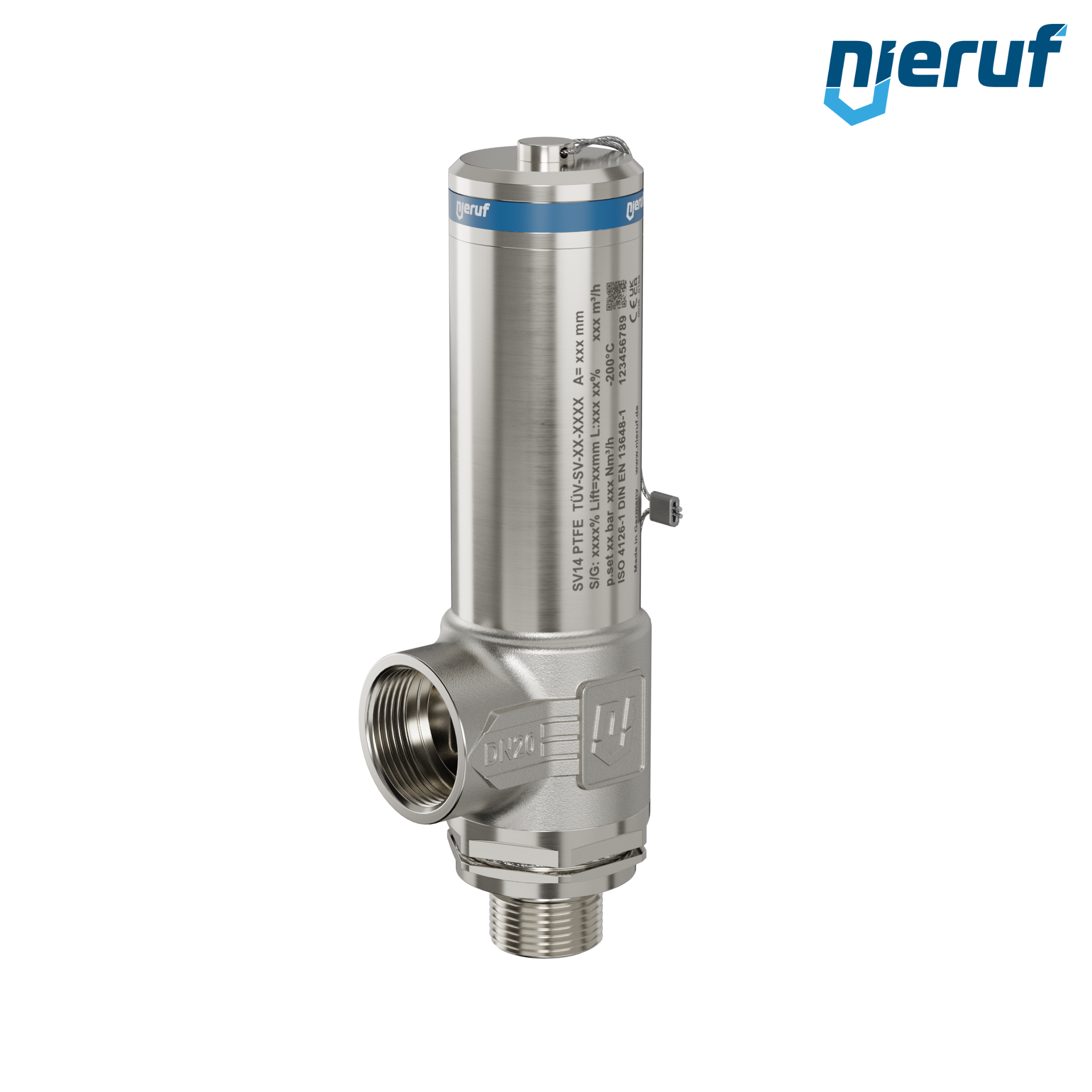 valvola di sicurezza criogenica DN15 1/2" M x 3/4" F SV14, acciaio inox PTFE