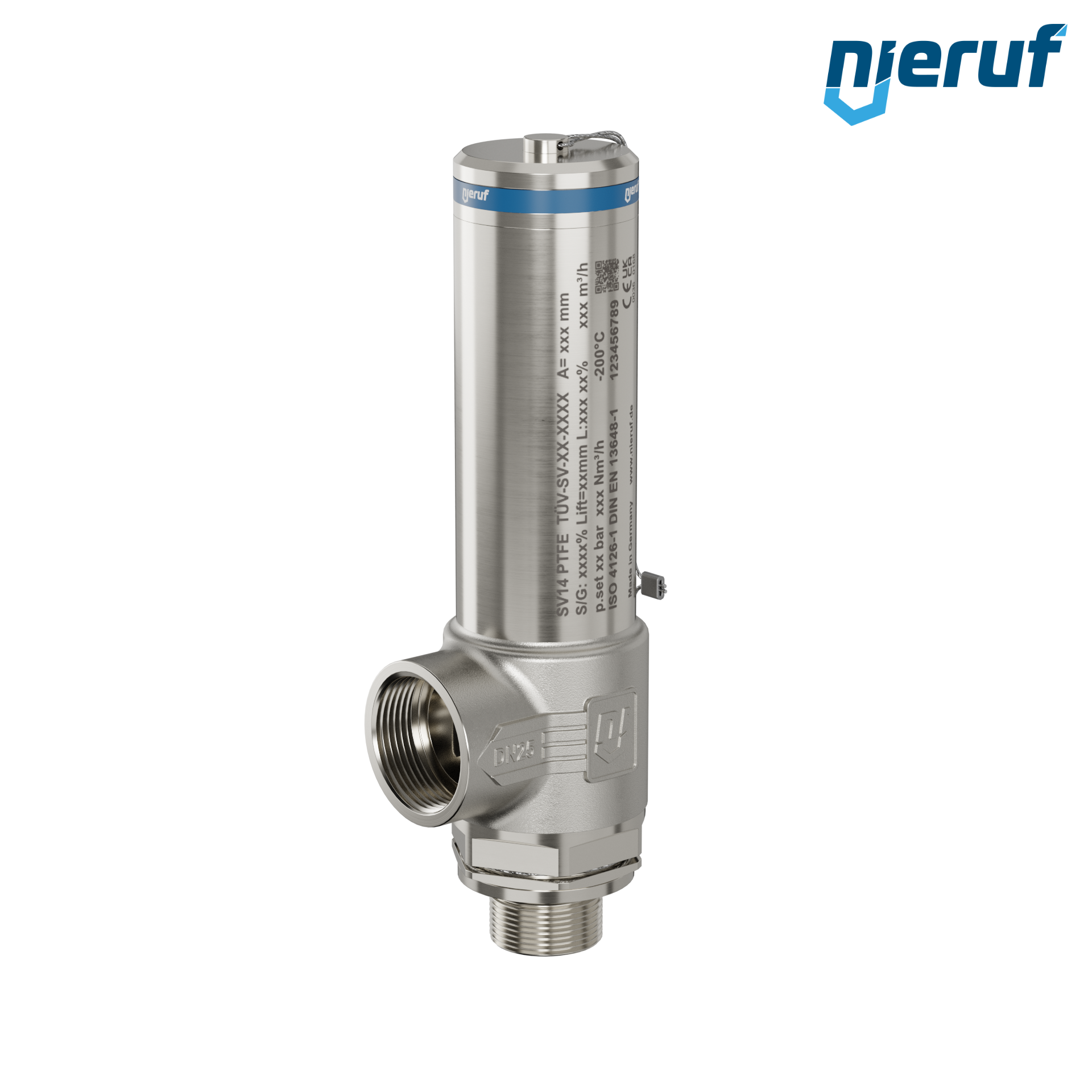valvola di sicurezza criogenica DN20 3/4" M x 1" F SV14, acciaio inox PTFE